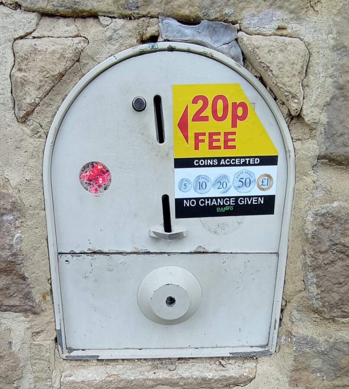 There are no digital machines to confuse you, you don’t need a credit card, just old- fashioned cash. And, if you haven’t got a 20p piece the machine accepts 5p,10p,20p and 50p pieces as well as pound coins just don’t expect any change if you haven’t got the right money.