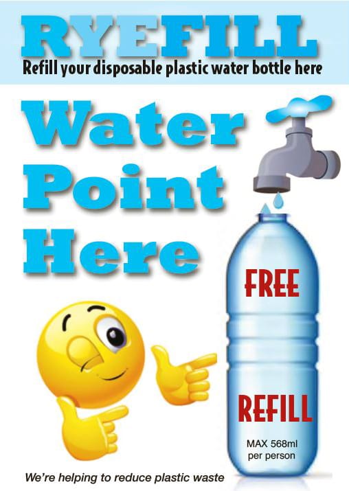 The trail blazed in Bexhill and Battle has now come to Rye. Where you see the poster you can refill a disposable plastic bottle for free rather than just throw it away.