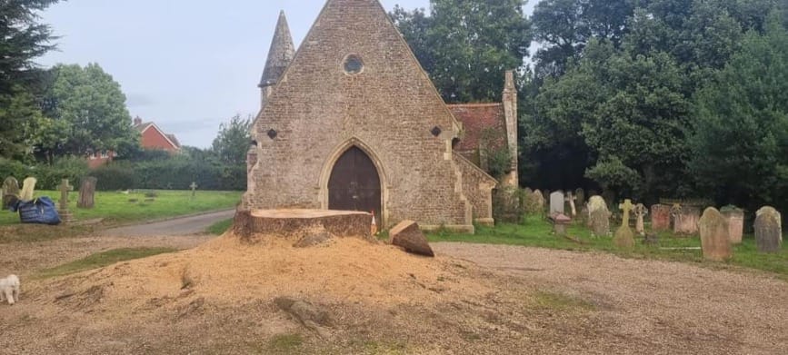 Many local residents of Rye are deeply saddened by the felling of a large cedar tree in Rye Cemetery. It was part of their childhood and had special memories for them.