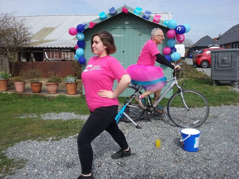 Staff also set up a ‘healthy eating’ sweepstake, a ‘name the cuddly puppy’ sweepstake and a second-hand books sale (books were kindly donated by the shop’s customers). However, the real fun happened on Saturday, when staff and friends endeavoured to cycle 100 miles on a static exercise bike – and succeeded! Everyone that took part was a good sport and wore the 'tutu de bicyclette', and they truly put their backs into it for six and a half hours.