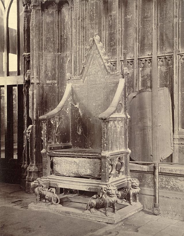 The Stone of Scone, temporarily reunited with St Edward’s chair for the king’s coronation on Saturday, May 6 was taken from Scotland as one of the spoils of war by King Edward I in 1296.