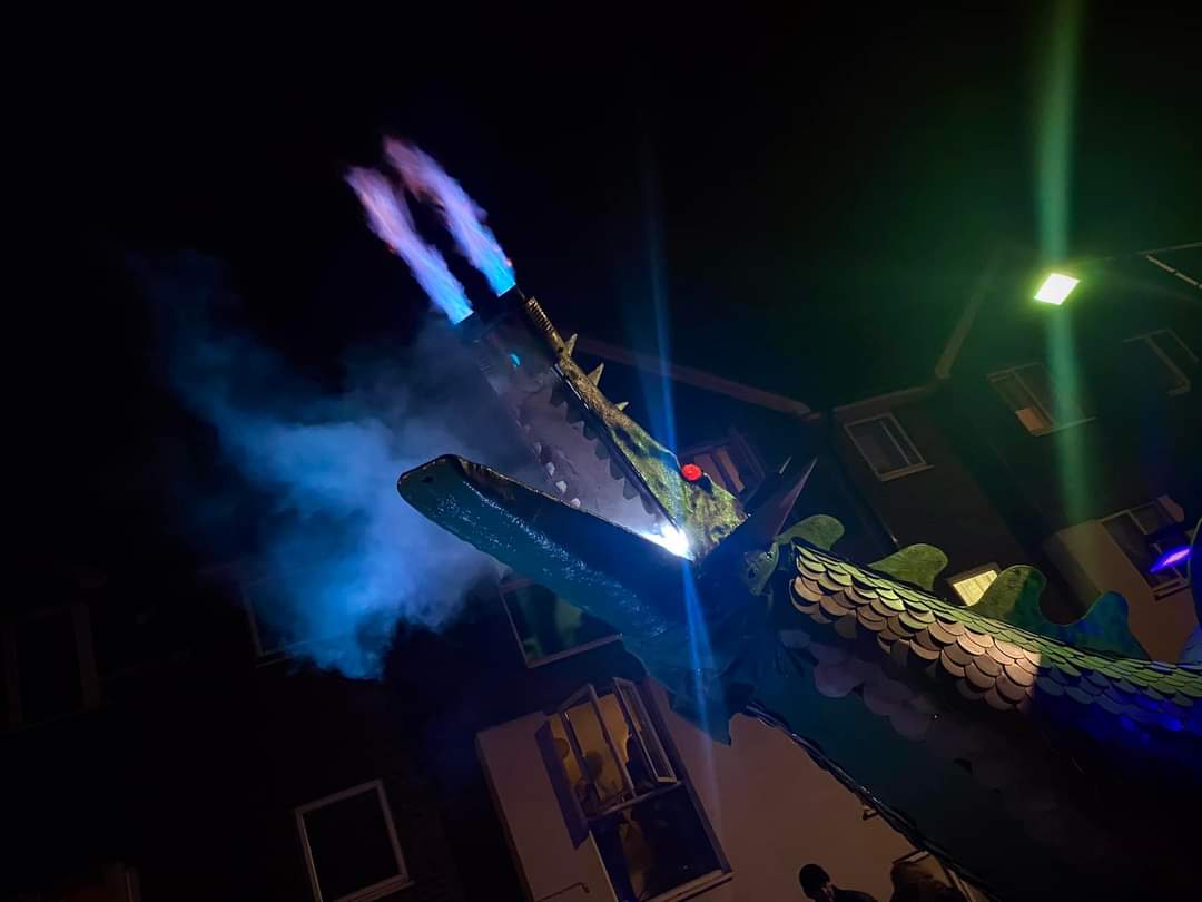 In the mid 80s the Bonfire Society ceased, putting a stop to the annual celebrations and procession and Scorcher was put in storage. With the reforming of the Bonfire Society in 1994 the pageant was revived. Scorcher was in need of some refreshing: the head and the workings were redesigned and rewired and the original acetylene-powered flames guns were replaced with propane.