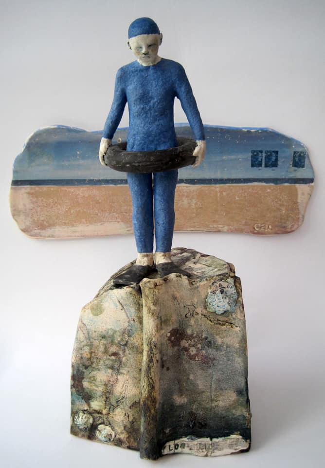 Carole makes figurative, mixed-media ceramics. Her work is illustrative with the narrative inspiring the viewer’s wider imaginings. Through her work she aspires to balance technical skill with a sensitive personal expression. Travel is a recurring theme and she exhibits in the south of England.