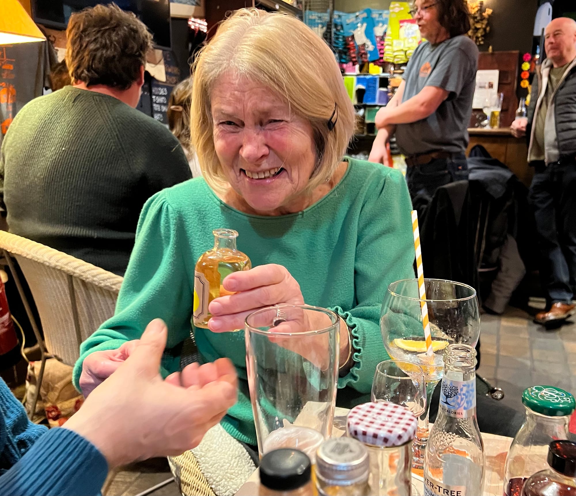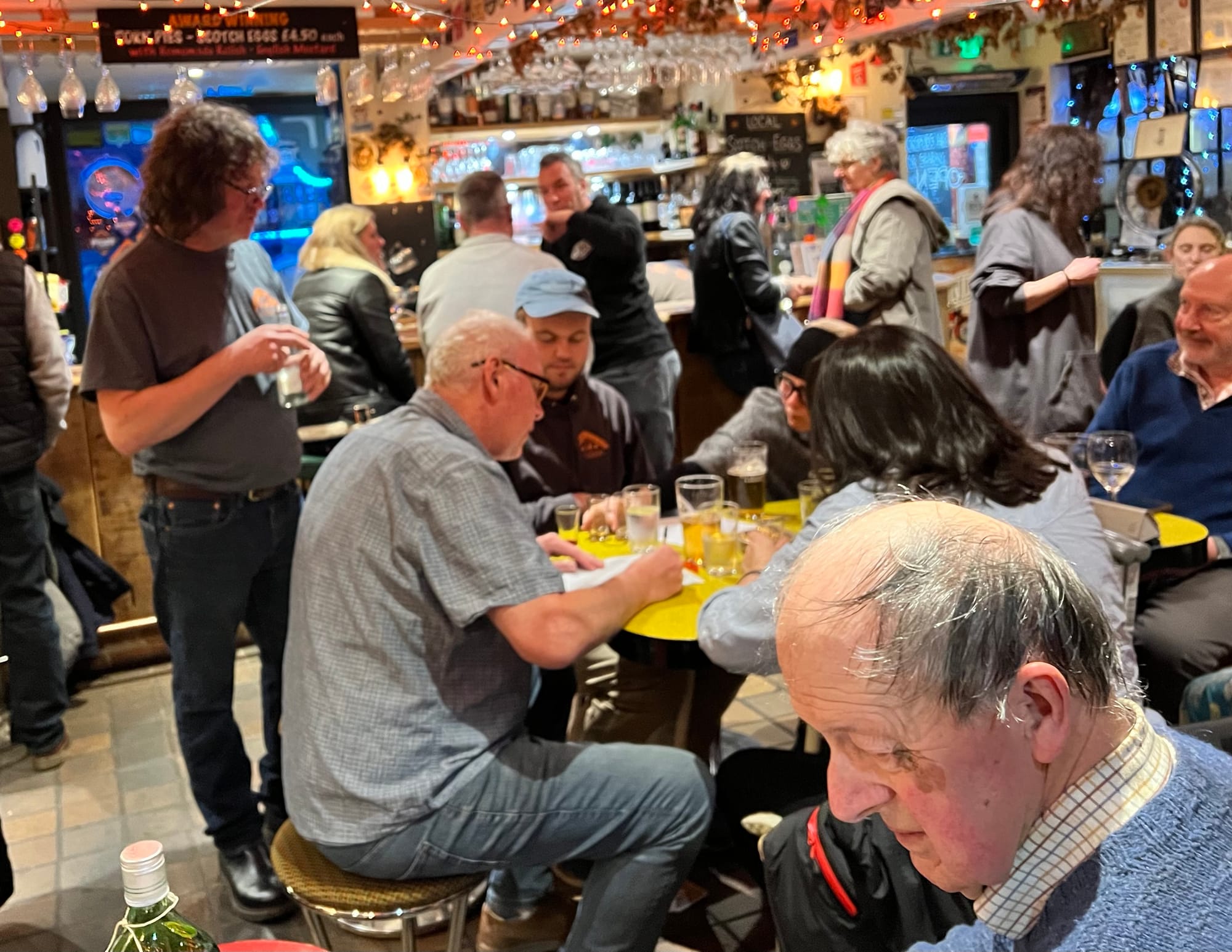 Dave Roder chose the four judges for the event. He said the criteria for this important task included availability (of course) and ability to get home safely afterwards. But I think what he meant to say was “palate, nose, and passion for gin” perhaps? Anyway, a meticulously fair process of judging was in place. Brown paper wrapping of each participant bottle to ensure anonymity. Random numbering and order of tasting. Just as an aside, David, this may have resulted in complete confusion by tasters and myself on what was being judged. Hence why I came fourth in the plum category? Key to success for this lively event is David’s ability to wash shot glasses quickly after each round. As he stated to Rye News: “We are a beer place, not a gin palace…I am washing up as fast as I can.”