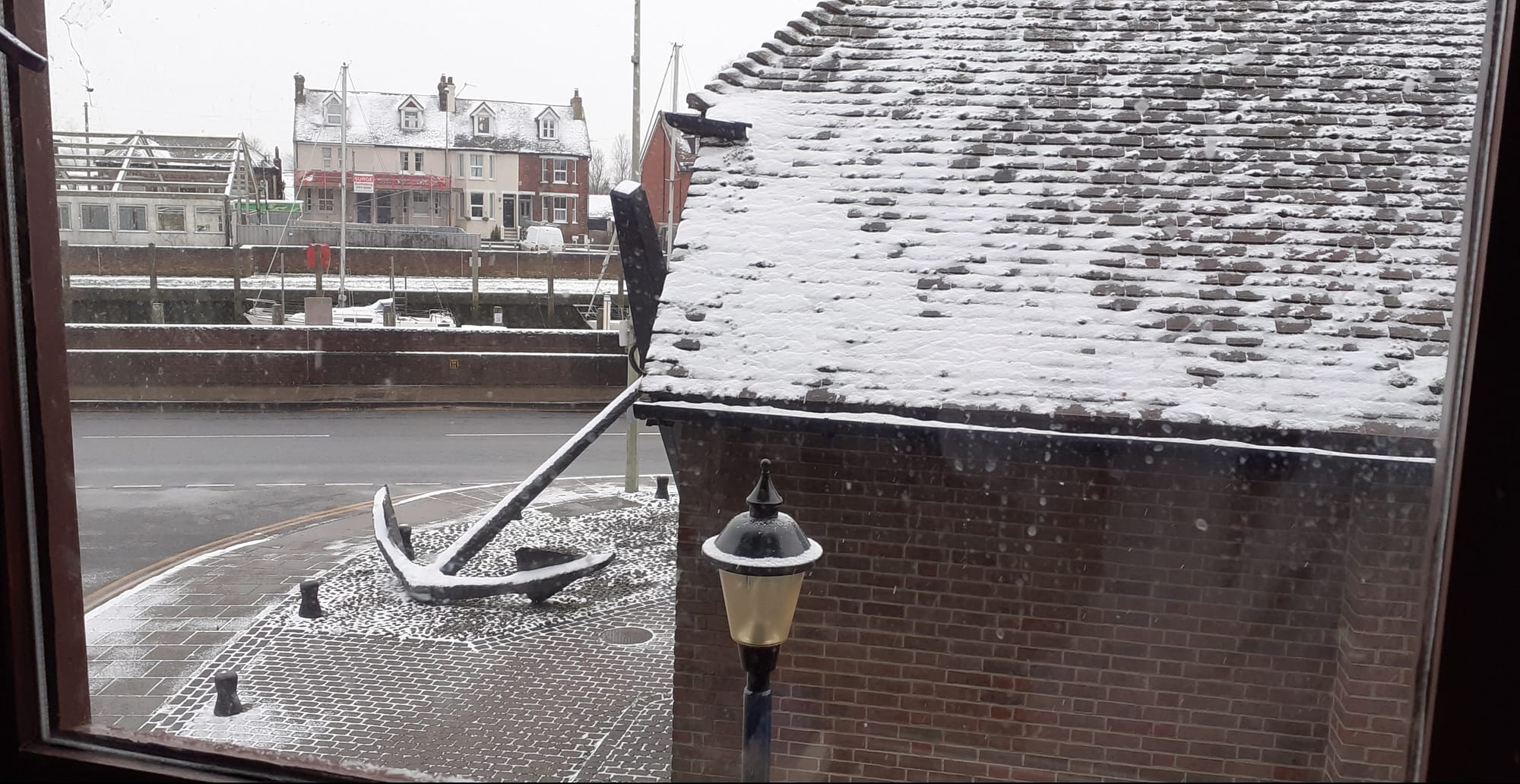 At last, after the promises of snow to come, on Sunday, February 7, the enclave of our town was swirling with flakes. It did not last, nor did it settle, but it altered the odd local corner on Strand Quay. No doubt further north children and parents on sledges will be out to enjoy a moment of outdoor exercise, socially distancing of course.