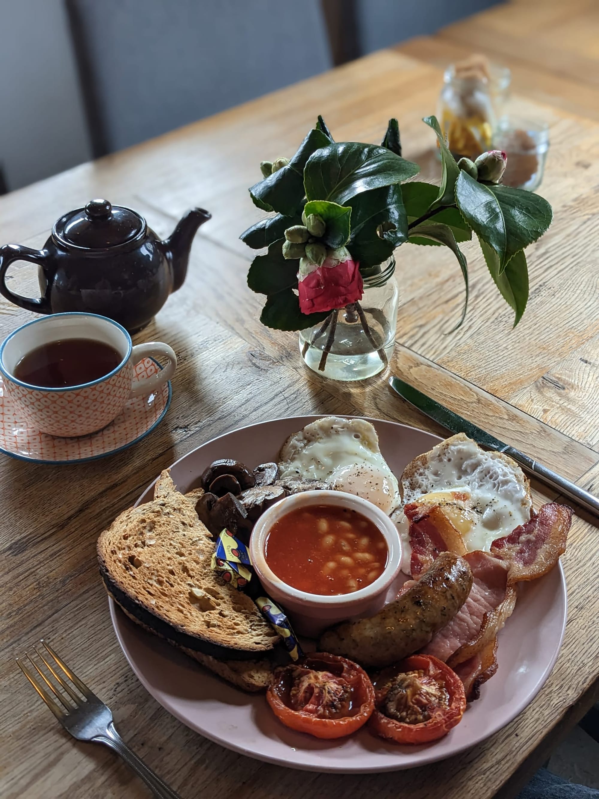 Breakfast is served 9am – 11:30am and there is plenty of choice - full English, veggie breakfast, Canadian style pancakes, house granola which is vegan, and butties of different varieties. The farm’s own free-range eggs and sausages from Rye Butcher are used.