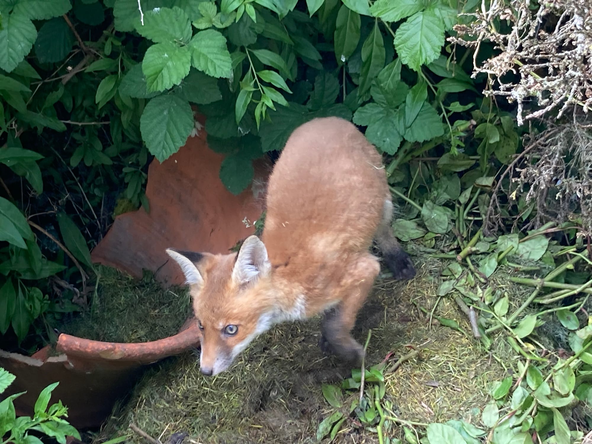 A young fox cub about 10ft away from our back door on Watchbell Street, just over from our fence. I know we are said to have a medieval badger set in the jungle which is South Undercliff, but I am surprised we have a fox’s earth as well.