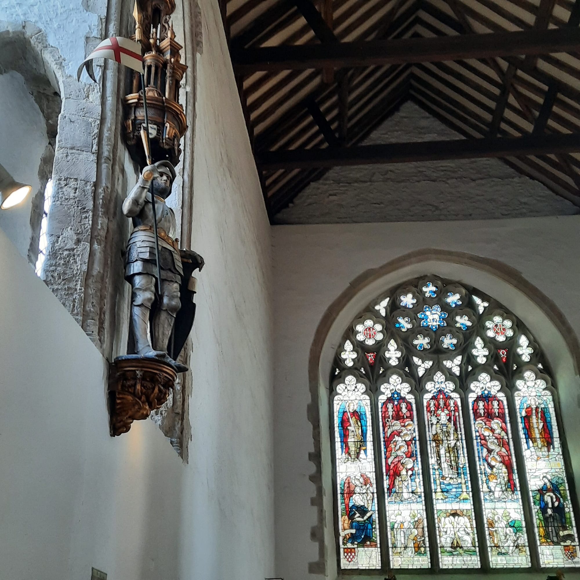 Now this may be connected to the noise levels of the music but let me whisper to you of an event our Roman cousins in Watchbell St would probably claim as a miracle - St George has moved! No reaction? Ah...you didn’t hear. St George is on the move! What do I mean? Well, after the tremendous organ of James Taylor - Hammond organ that is, of course - rounded off the festival with a set that must have made some of the occupants of the churchyard think they heard the last trump, it was observed that St George had marched forward. Well, shuffled if you must be literal, as it was only a couple inches at most. You see we have a plinth in the Clare Chapel,- hmm, yes, yes it was the bar for the duration of the festival, but we don’t talk about that- halfway up the north wall, and when things returned to normal we observed that something had stirred our national patron whose feet were now projecting beyond his plinth like a fledgling about to try his wings.