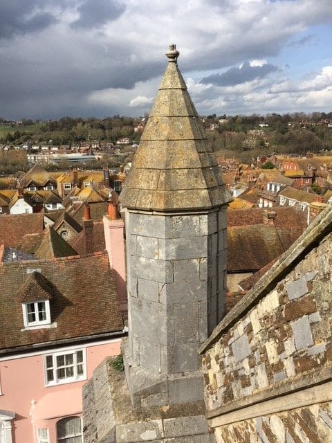 His task was to dismantle the remains of the pinnacle, part of which had fallen in March 2018 narrowly missing a resident of Watchbell Street as he was crossing the churchyard, as reported last June in Rye News.