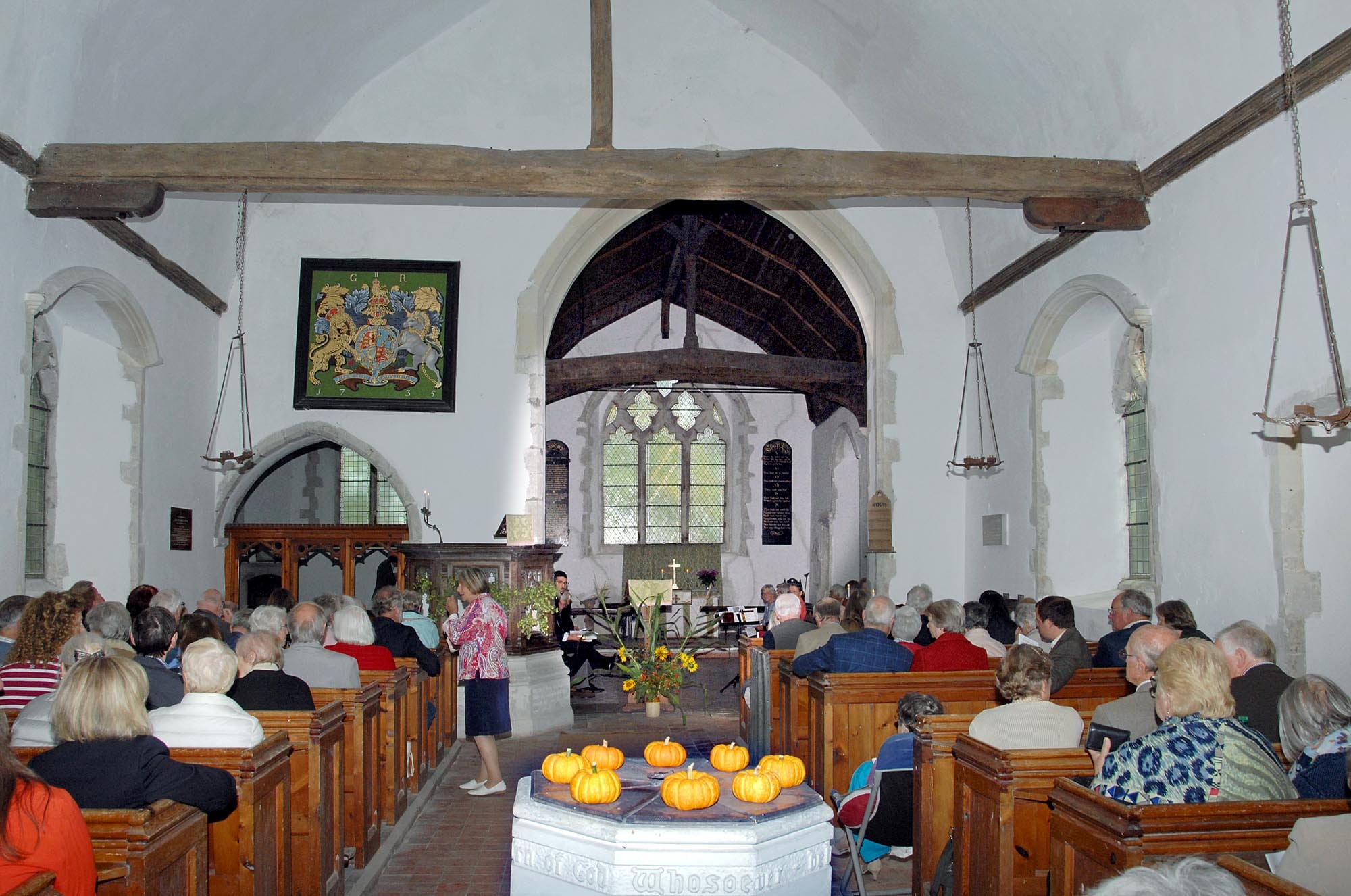 The congregation, including two horses studying proceedings from their paddock outside the main entrance, far exceeded the 100 seats available along the old wooden pews while cars overflowed from the wide grass avenue leading to the church and spread for over a half mile along the country lane beyond. Picnic seats were hastily appropriated from car boots and those on the pews were politely urged to ‘nudge up’. And one attendee was heard to say: “Never seen so many smiling faces in a traffic jam.”