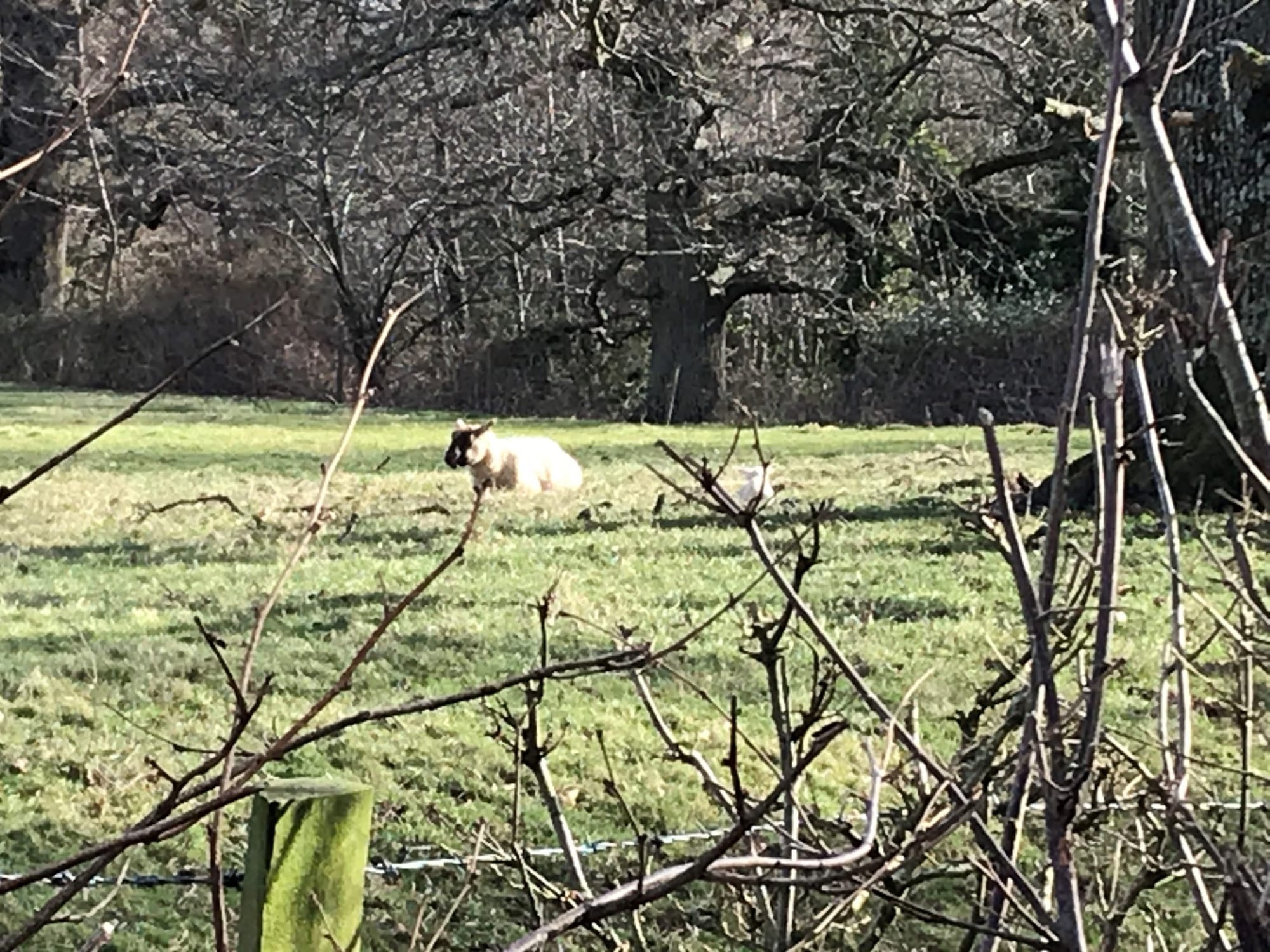 Returning to Peasmarsh and on driving along Starvecrow Lane I did a double take as nestled under one of the huge oak trees on the edge of a field was a ewe with her two newly born lambs sheltering near her (you need to look closely at the photo to see one of them) and I wondered what these two early arrivals must have thought when they awoke to their whole new world this week.
