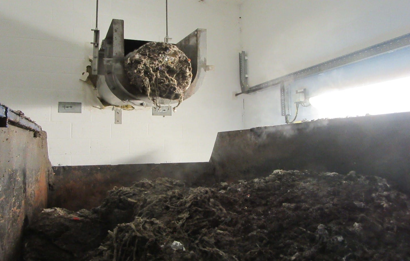 As you would expect, the waste water goes through a number of stages of treatment: preliminary, primary and secondary. The first thing that needs to happen is to remove all the things that should not have been in the system to start with, including fat, oil, grit and grease, but also larger objects, referred to as "rag’" A fine mesh catches anything that is no more than 6mm x 6mm in size, but this means that some thin objects, such as cotton buds, can sometimes get through. Over a typical week, there will be three or four skip loads of rag; however after heavy rain, this can be as much as five skips in two hours!