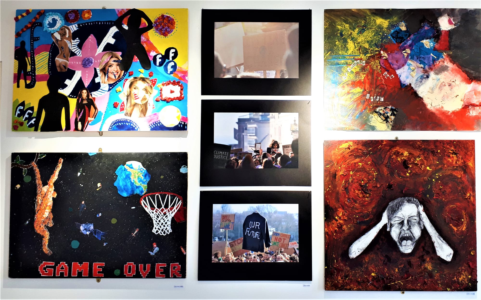 Other students looked at the current politics surrounding the climate emergency, and studied historical, geographical and scientific aspects to the problems. Others looked at the direct impact on nature, focussing on plastic pollution, hunting and extinction. Each unique viewpoint juxtaposes the disgust, fear and helplessness that our young people feel about these issues with the emotion, beauty and power that their artworks convey.