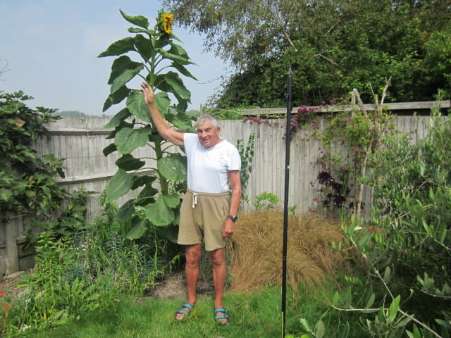 The second fabulous photo was sent in by local resident Derek Bayntun featuring him standing in his garden next to his pride and joy, his sunflower which is now over 9 feet high. Is this is record or can you beat it?