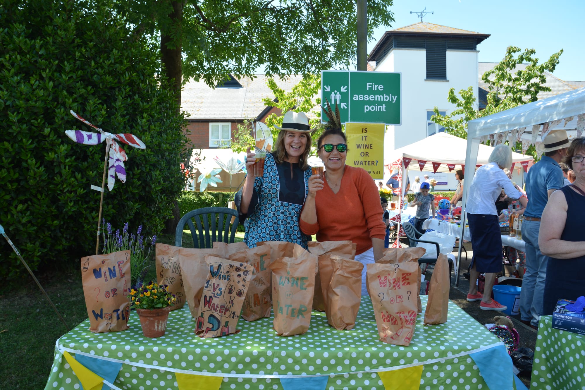 Elsewhere, many happy people wandered around, trying their hand at the Wine or Water stall with shrieks of delight when they choose a bottle full of wine rather than water, the tombola was incredibly busy, and the sweet hoopla, tin can alley and sand cup game didn’t stop all afternoon with children trying to hoop a jar of sweets or knock down the tins to win bubble wands or water pistols. The colourful plant stall was a great attraction, as was the jewellery stall. Both raised significant amounts of money. A big thank you to all the volunteers who ran these stalls.