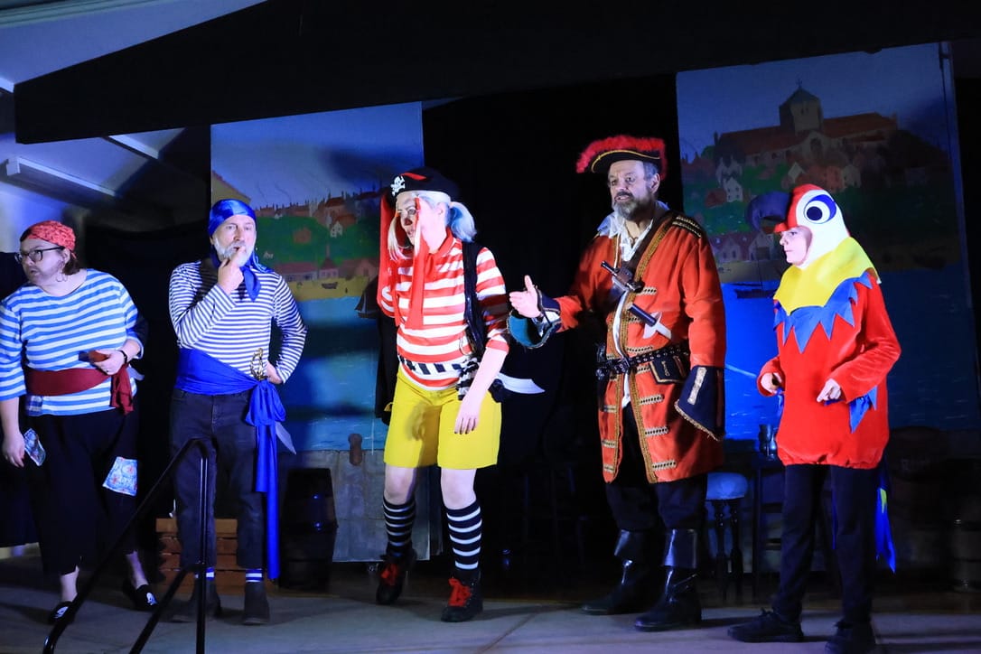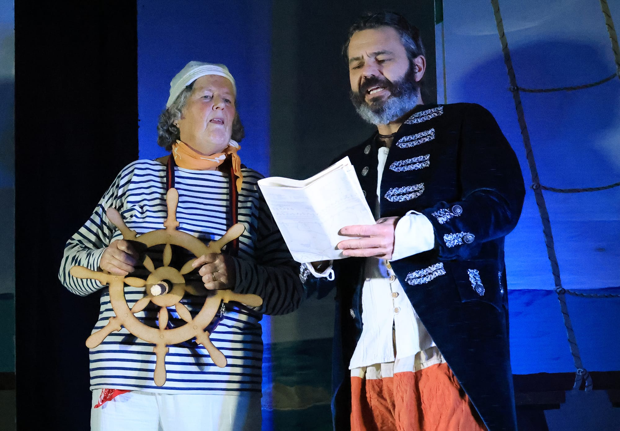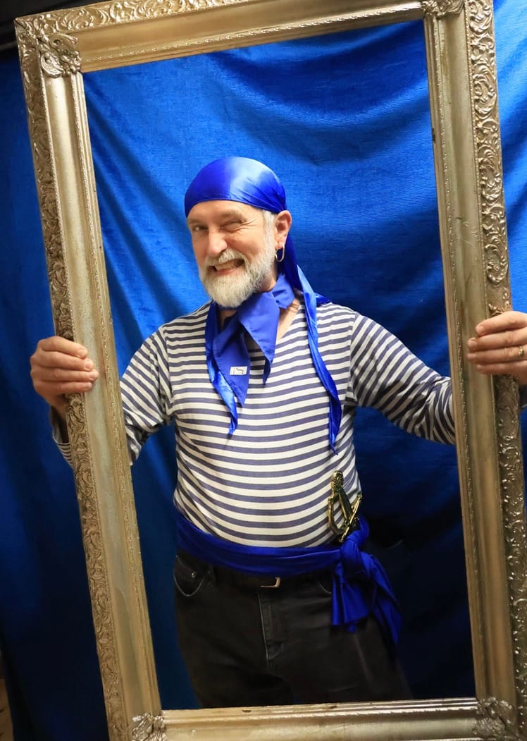 My first outing with Rye Players was to join the cast of Much Ado About Nothing in the summer of 2022. I'd never done Shakespeare before and was expecting something quite serious - but no! The Players were serious about doing a good job, but also serious about great laughter and wonderful friends and fun. I have since played the timid brow-beaten next-door neighbour with her beloved Jack Russell in the amazing production of Book Club in the 2023 Rye Arts Festival; a bearded fool in the 2023 pantomime; Sherlock in Holmes Under the Hammer in the 2024 arts festival; and now the idiot pirate with alter-ego puppet in Treasure Ryeland! Looking back I see the pattern of glamorous roles, ha ha!