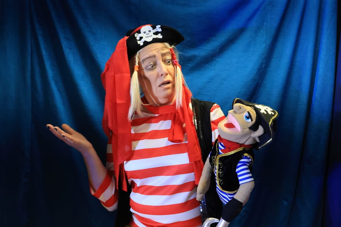 I’m playing Pirate Quigley, a very likeable idiot who needs sympathy and talks to the audience a lot, asking for their support against the baddie Long John Saliva. Quigley has a puppet version of himself that he talks to, he is very sweet and funny. I love having a split personality in this, I’ve never had a puppet before and it is brilliant!