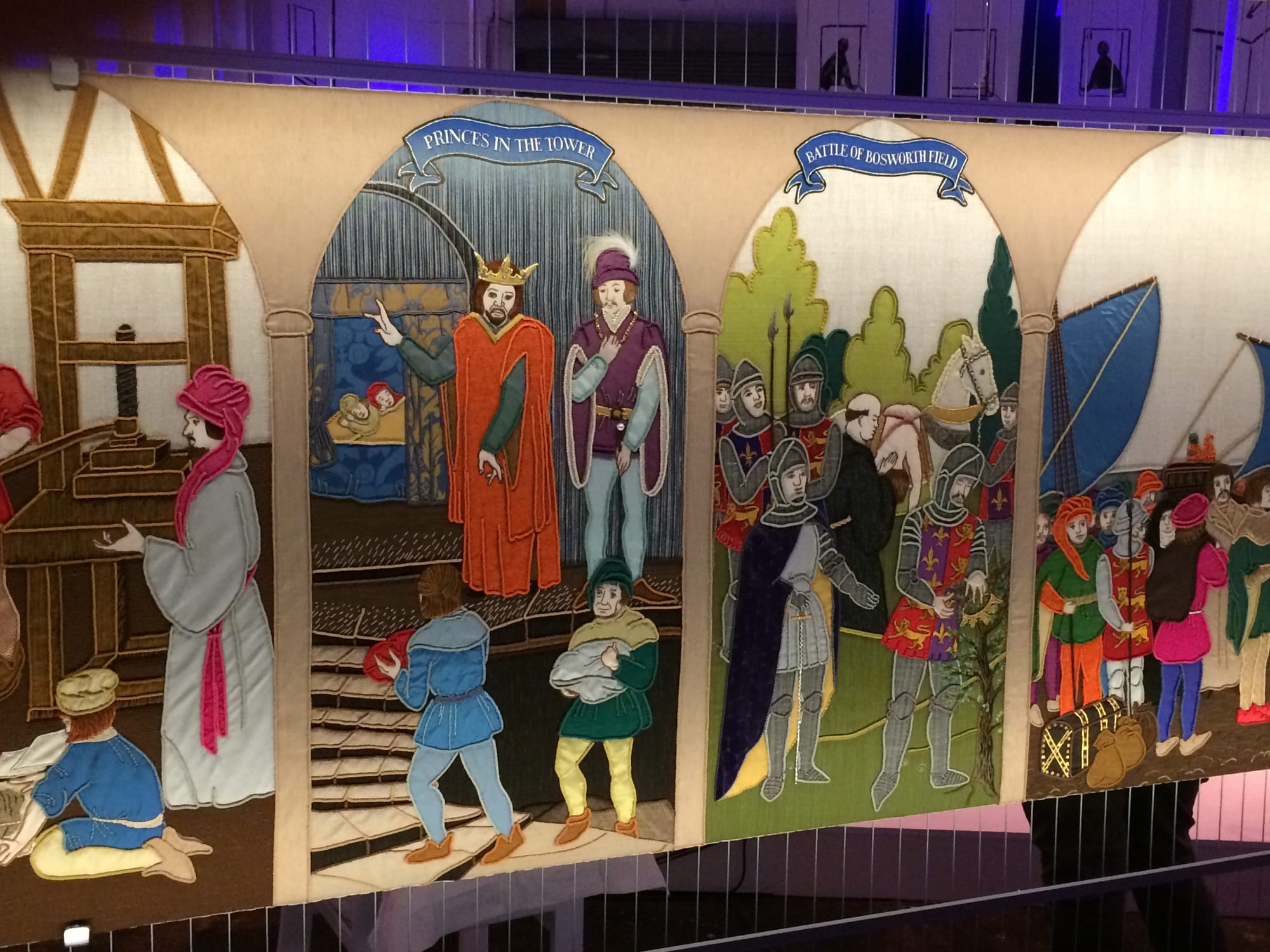 The 27 tapestry panels with scenes from the history of Britain from 1066 to the reign of our current Queen, had been stored, away from public view, for many years and it was something of a coup for the Bridge Point management to obtain these for their first exhibition.