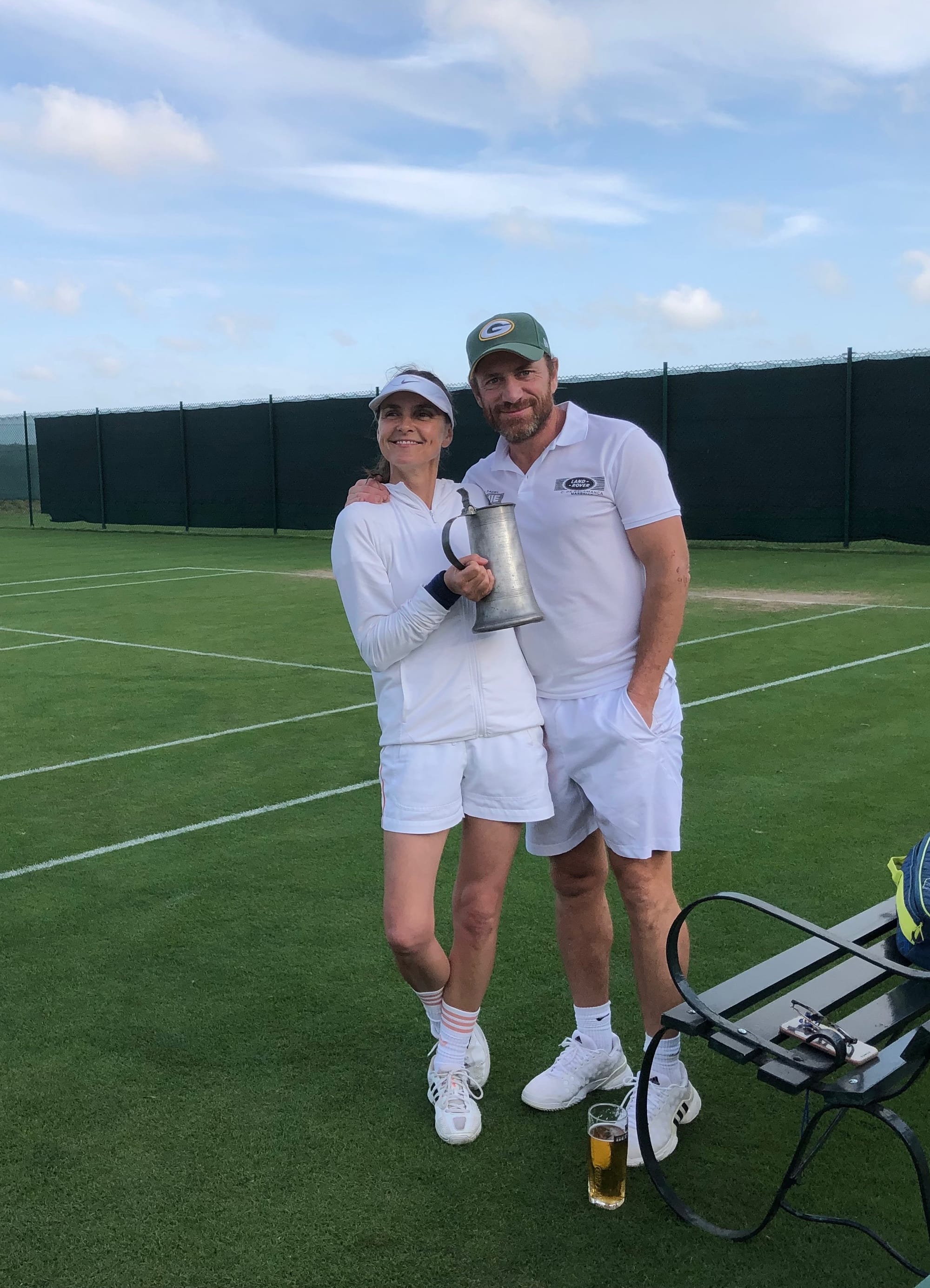 The club’s Members’ Tournament, scheduled for Saturday, sadly had to be abandoned due to unseasonably strong winds, which gave the tournament marquees quite a battering. Facing slightly less wind on Sunday morning, 34 couples took to the grass in the Farmer Mixed Doubles Tournament, named in memory of late RLTC board member John Farmer.