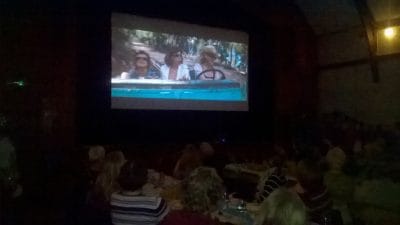 The organisers had prepared a delicious three-course meal, starting with super garlicky home-made humus and pitta bread. Then we had a moussaka and salad, again picking up the setting of the movie and finally apple pie and ice-cream.