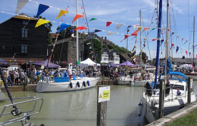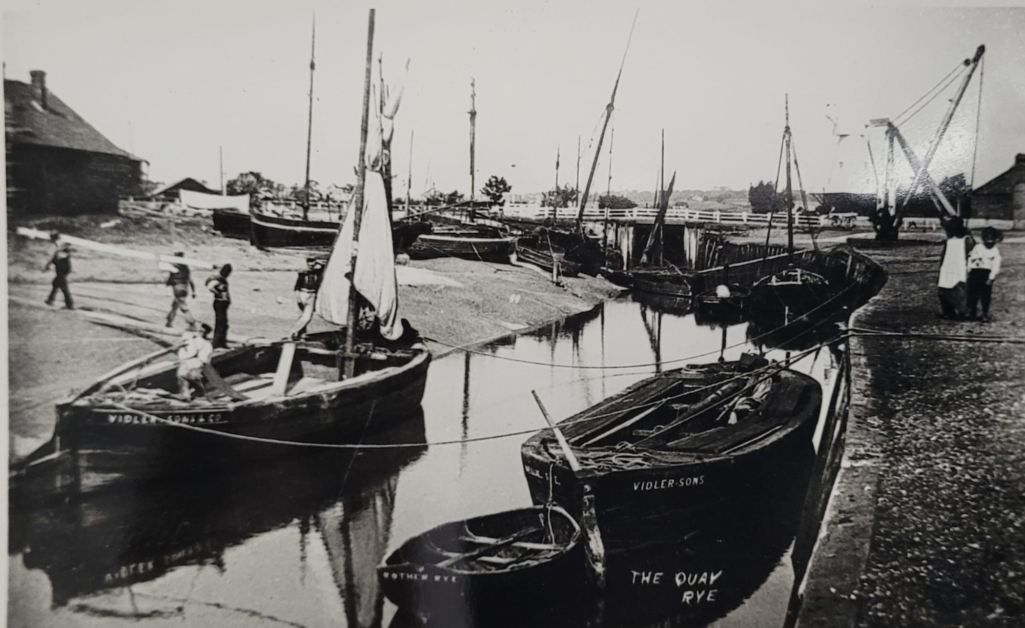 In the 19th century and first half of the 20th century, trading sea and river barges and coasters brought wood, coal and corn to the town or transported them up the river Rother to Bodiam and Smallhythe or via the Brede to Winchelsea. During this time the warehouses, seen clearly in the feature image, were used by timber, corn and coal merchants.