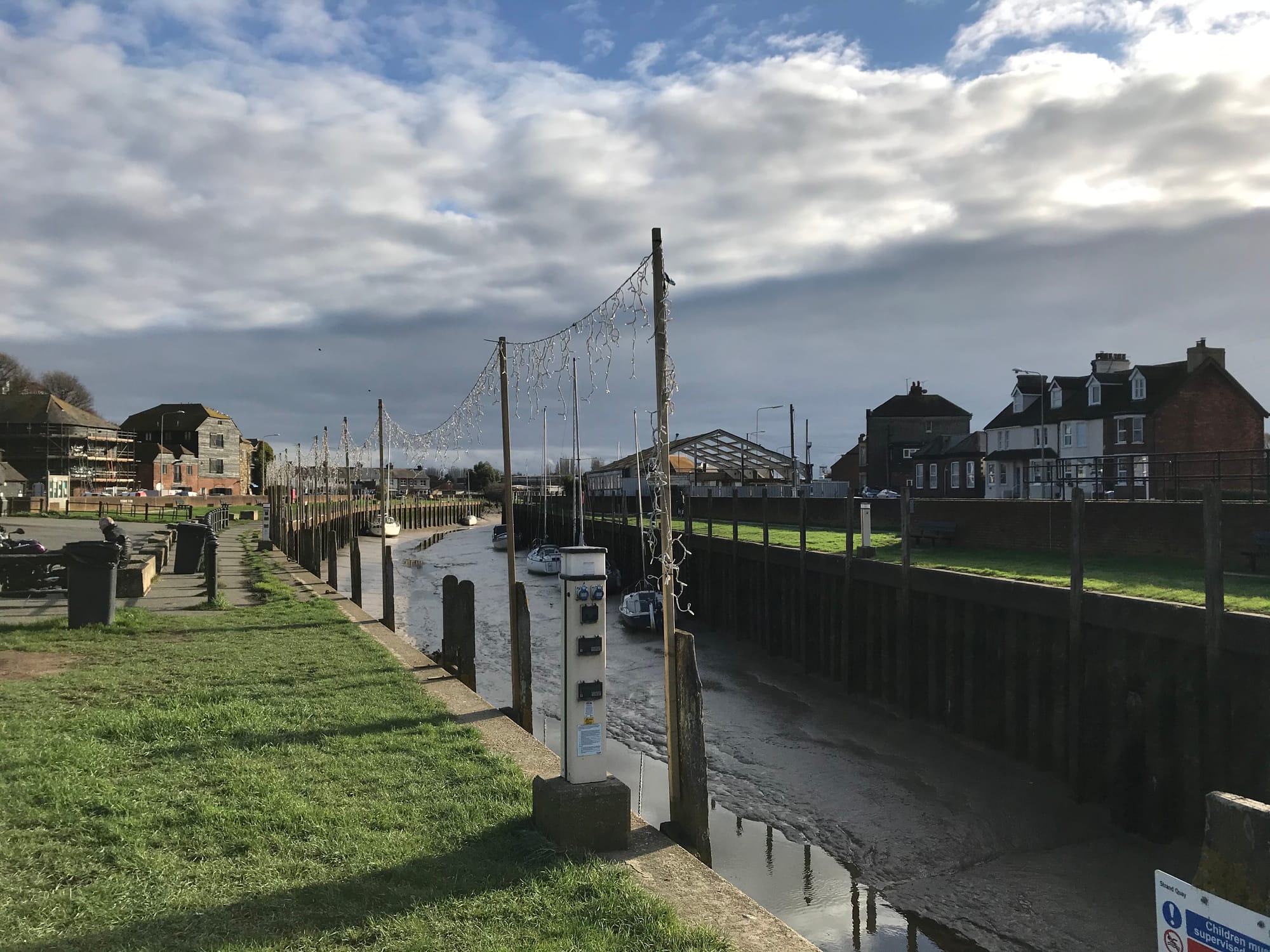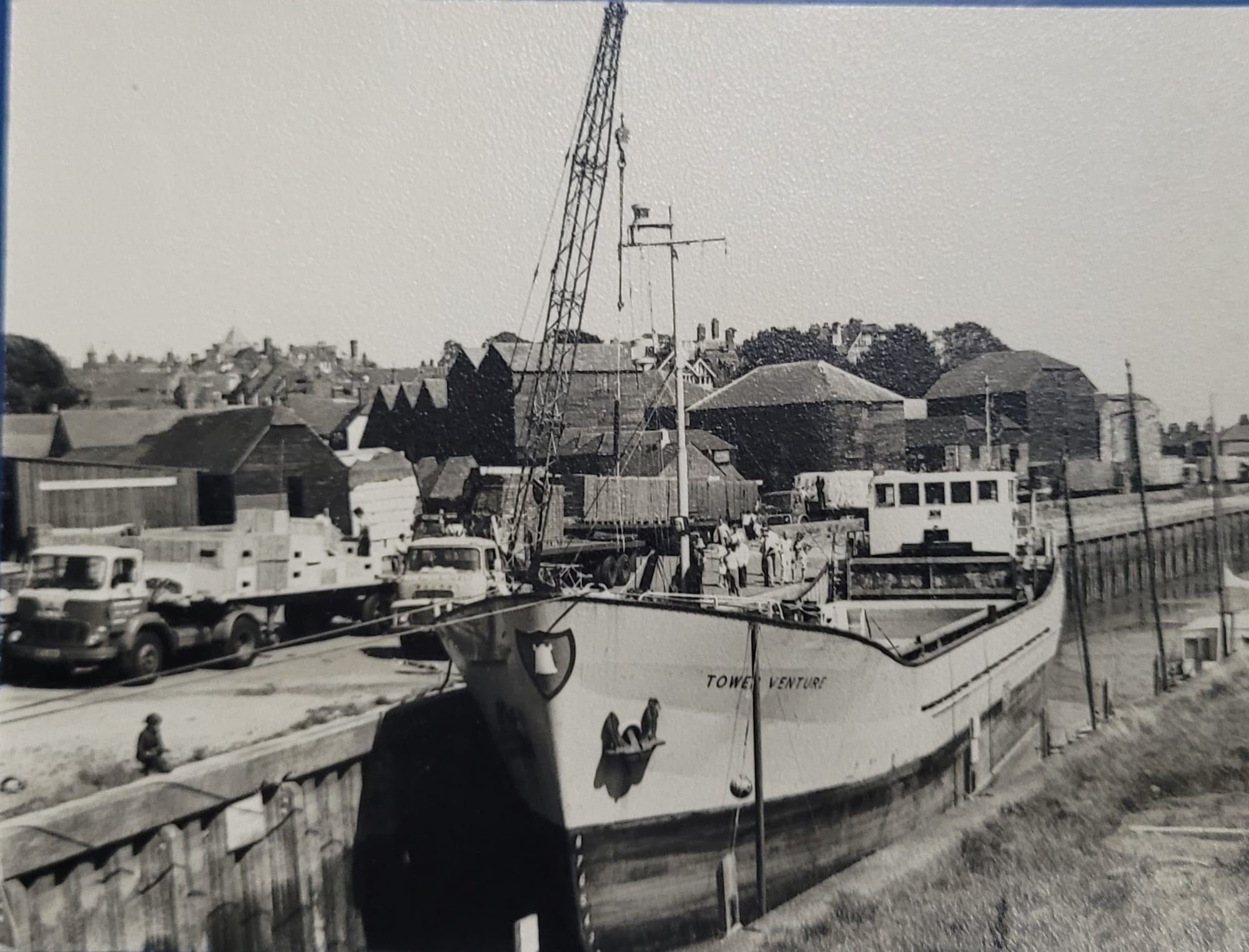 In this 1945 photo, the built up quay can be seen with St Margaret's Terrace in the background. There was no road past the warehouses until the A259 was built in the 1960s and a flood wall built between the road and the quay.