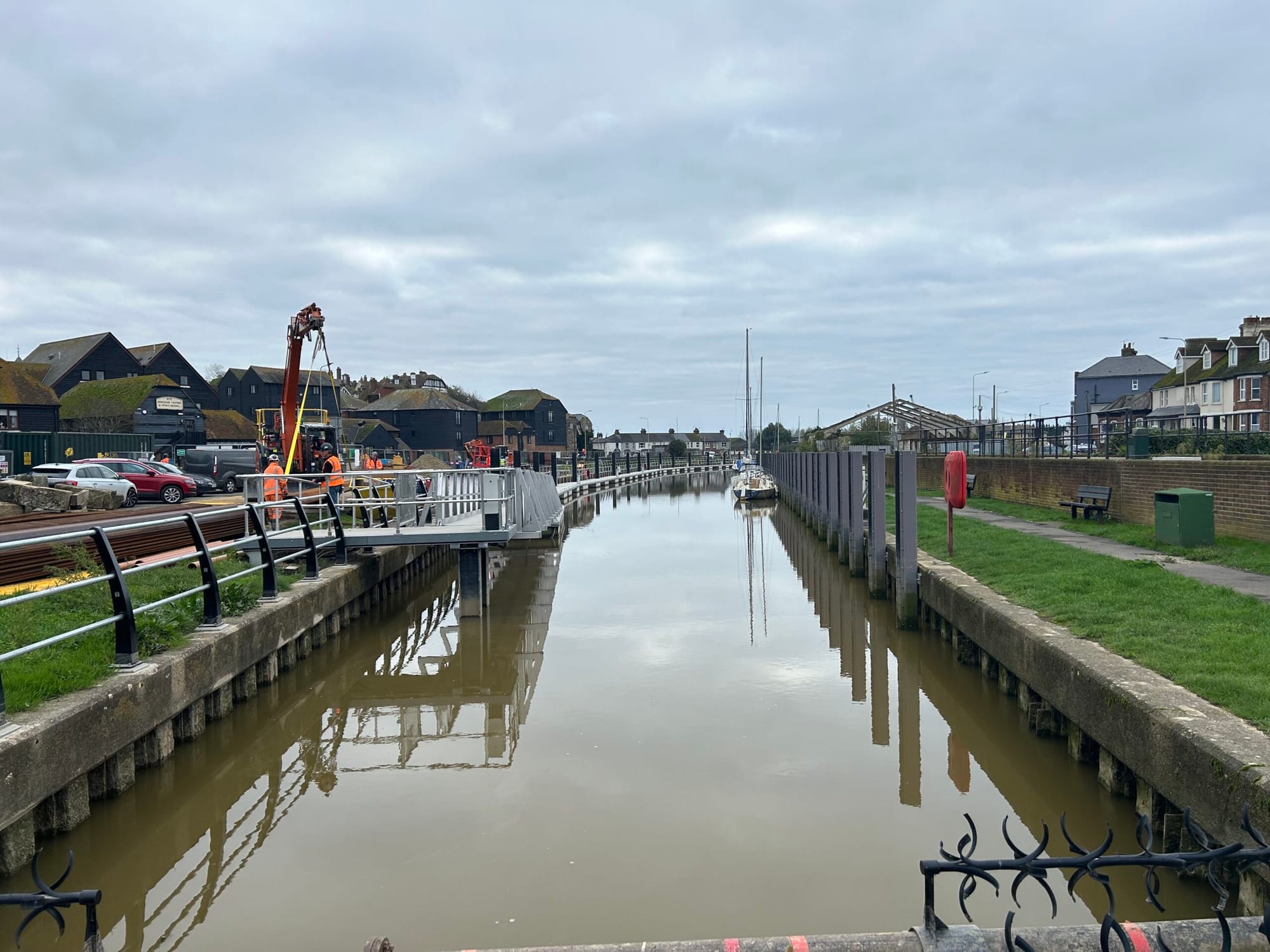 Work continues at Strand Quay 2024 showing floating pontoon and new moorings to attract more yachts, new moorings with electricity and a floating pontoon which rises and falls with the tide, will dramatically improve the access and avoid the need to climb slippery ladders.