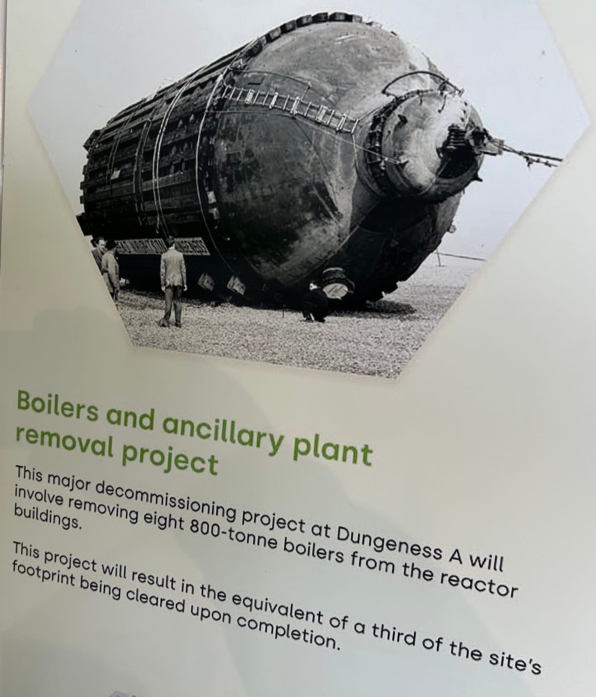 Ultimately most of the buildings at Dungeness A and B will be removed, while leaving and protecting the main reactor buildings. This is a major engineering project, and includes, among many other challenges, the removal of eight massive 800- tonne boilers from the site. This requires the development of new skills and capabilities to both remove the infrastructure and ensure the long-term safety of the site.
