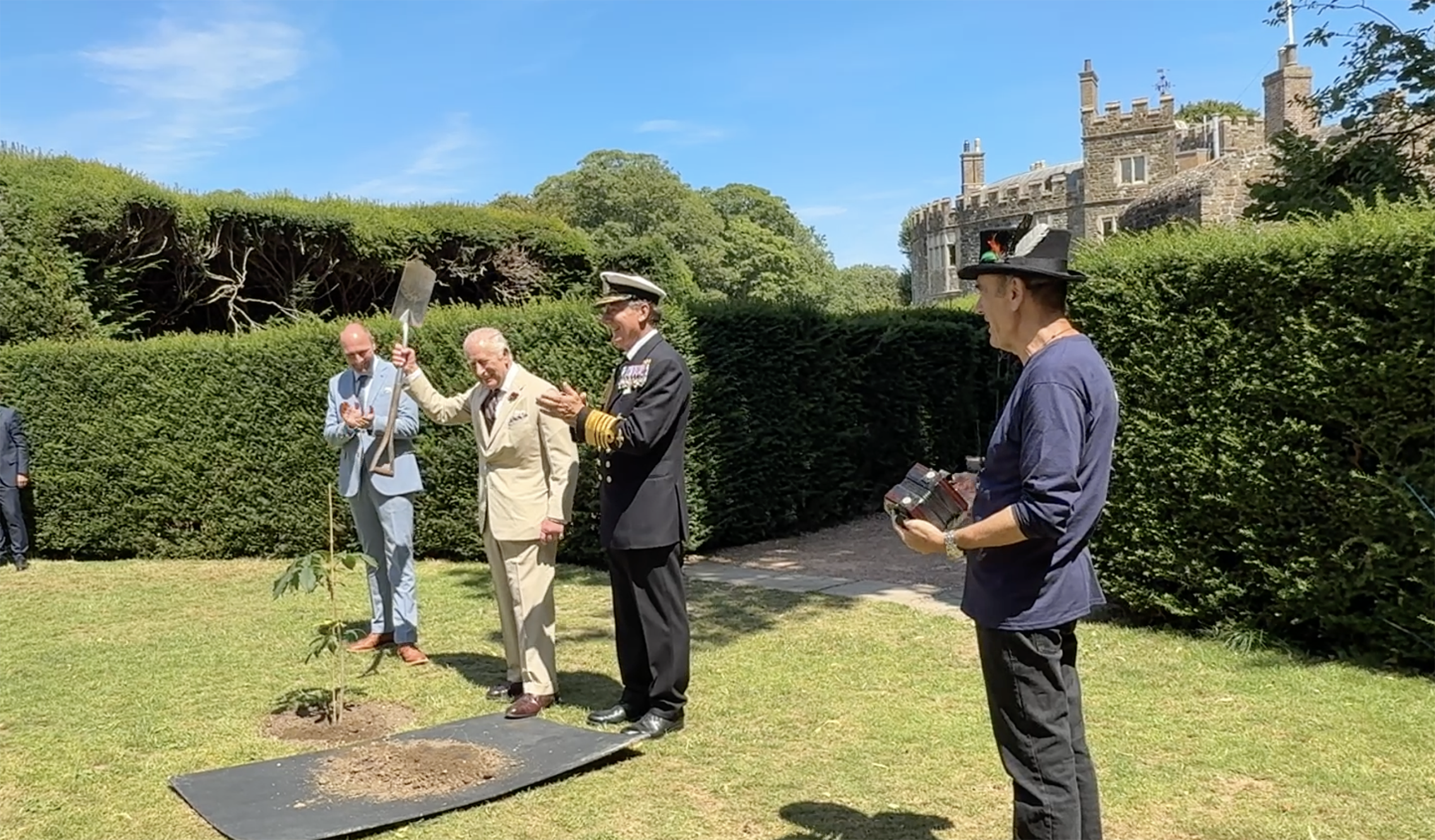 “Martin Bruce wrote and performed a wonderful and witty song (ditty) for His Majesty’s visit to Walmer Castle, which the King much enjoyed during the planting of a tree. Thanks, Martin!”