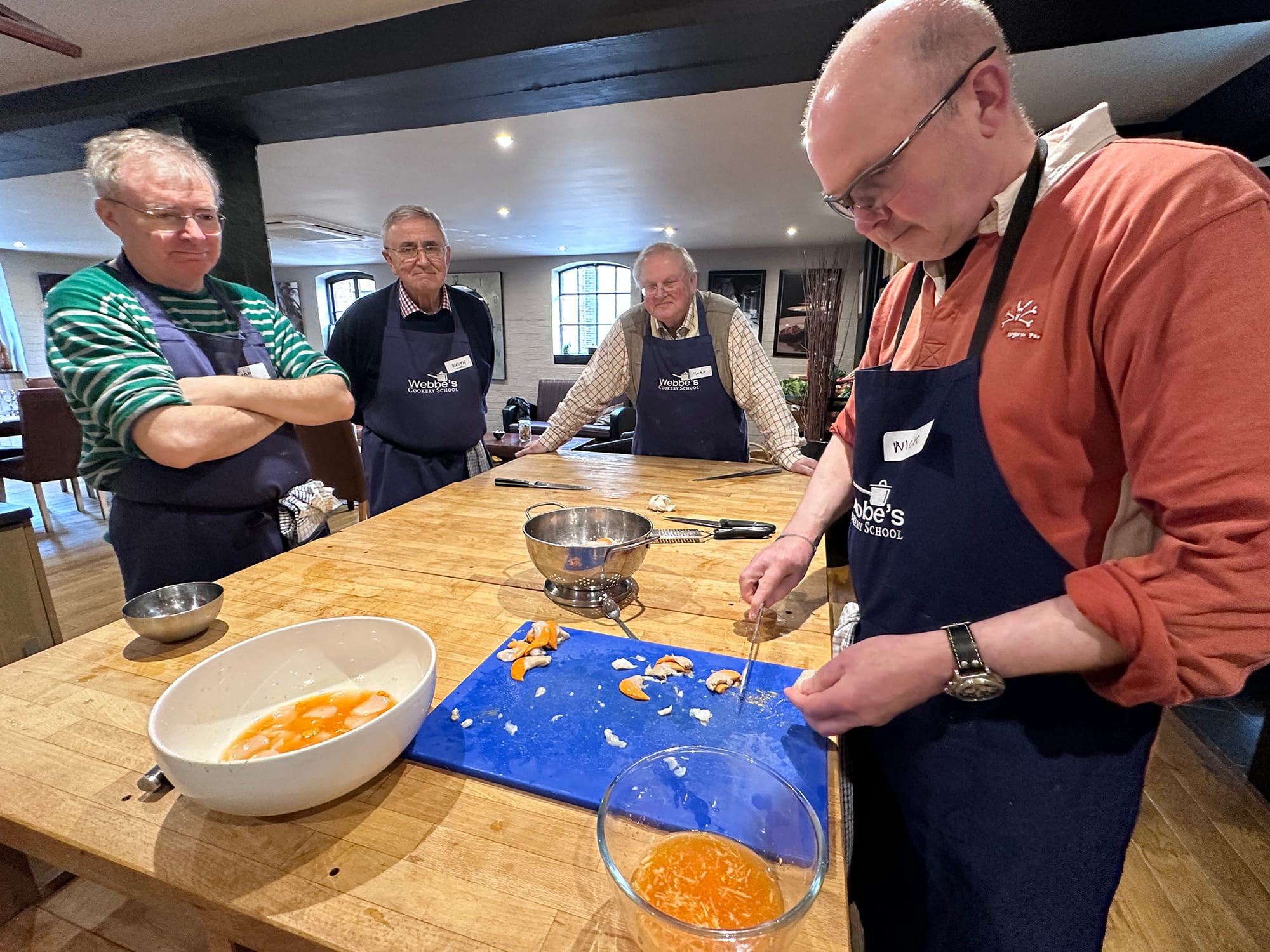 "This year the students learned to prepare their Rye Bay scallops in no fewer than six different ways, starting as an accompaniment to cauliflower soup with lime and Indian spices, through scallop ceviche with blood orange and avocado purée, to a main dish of pork belly with scallops in a Szechuan pepper sauce. Come tea time, after a stunning dessert of lemon bavarois with a rhubarb and blood orange compôte and a crispy basil-infused meringue, everyone rolled contentedly home carrying copies of all of the recipes helpfully detailed in a Webbe’s cookery folder, strongly resolved to do it all again next year.”