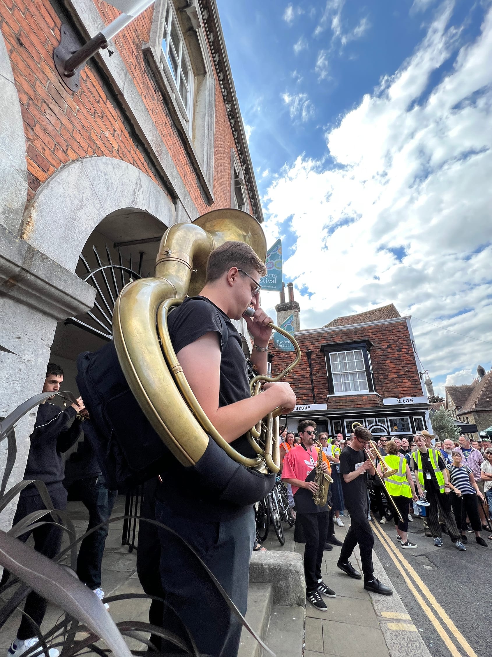There was one time a bird flew down the sousaphone, followed by a lot of scrabbling & scratching before it found its way out. Fortunately, we hadn't started playing, otherwise that bird would be seeking the help of an audiologist.