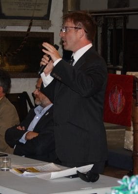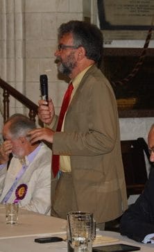 Wilson started to blame the banks and deals with Saudi Arabia but, despite his complaints that he was being censored, was cut short by the chairman who clearly sensed that the audience was getting restless with his single tune. Chowney concentrated on the local effect: 32 PCSOs, he said, had been reduced to five, despite the fact that they are the people who have the confidence of the community and were the front line of local intelligence gathering. Perry said it was a question of resources - currently insufficient - and Phillips went back to the Muslim theme and felt that the innocent Muslims were afraid of their own community. This view got little sympathy from the audience.