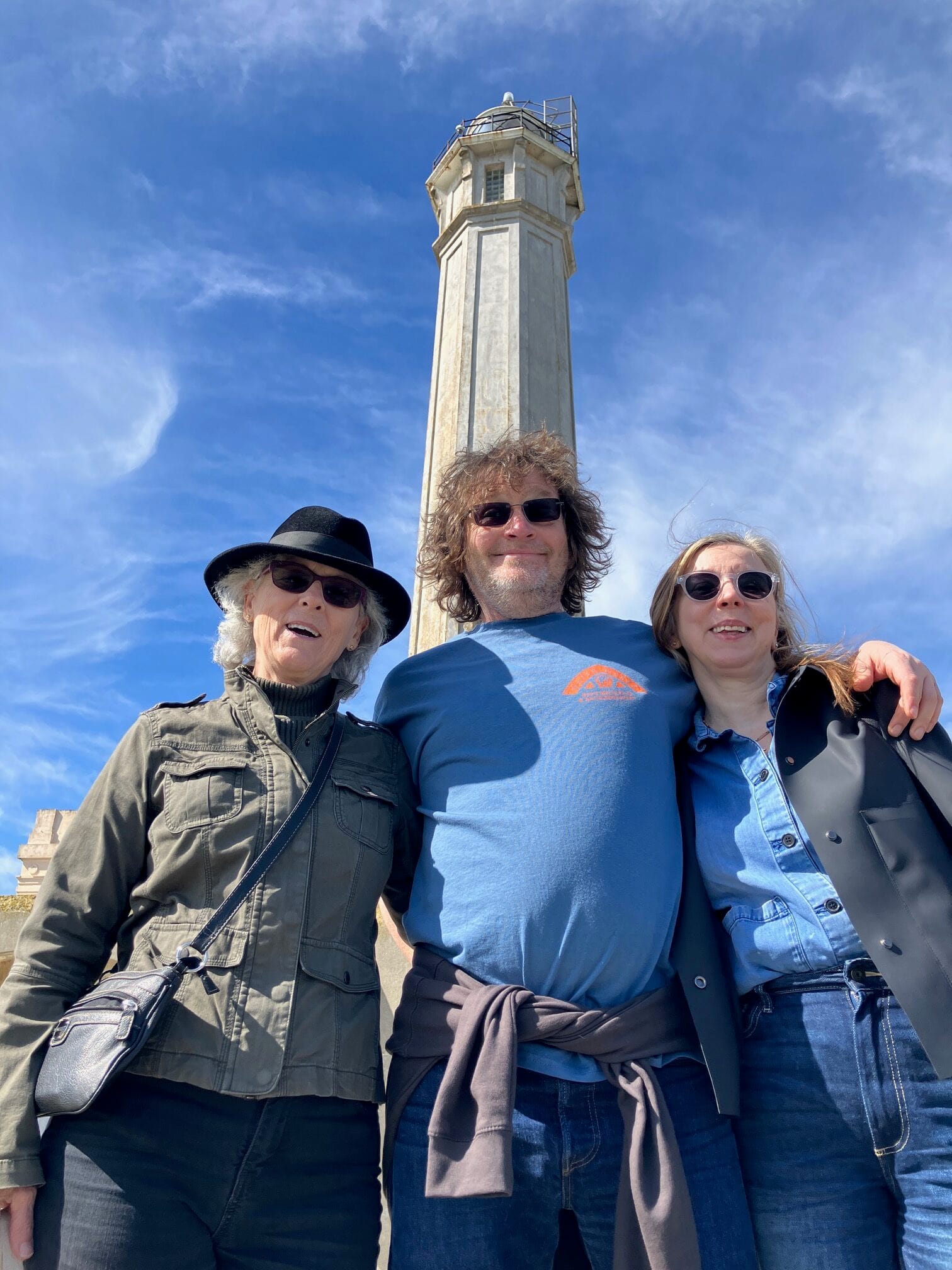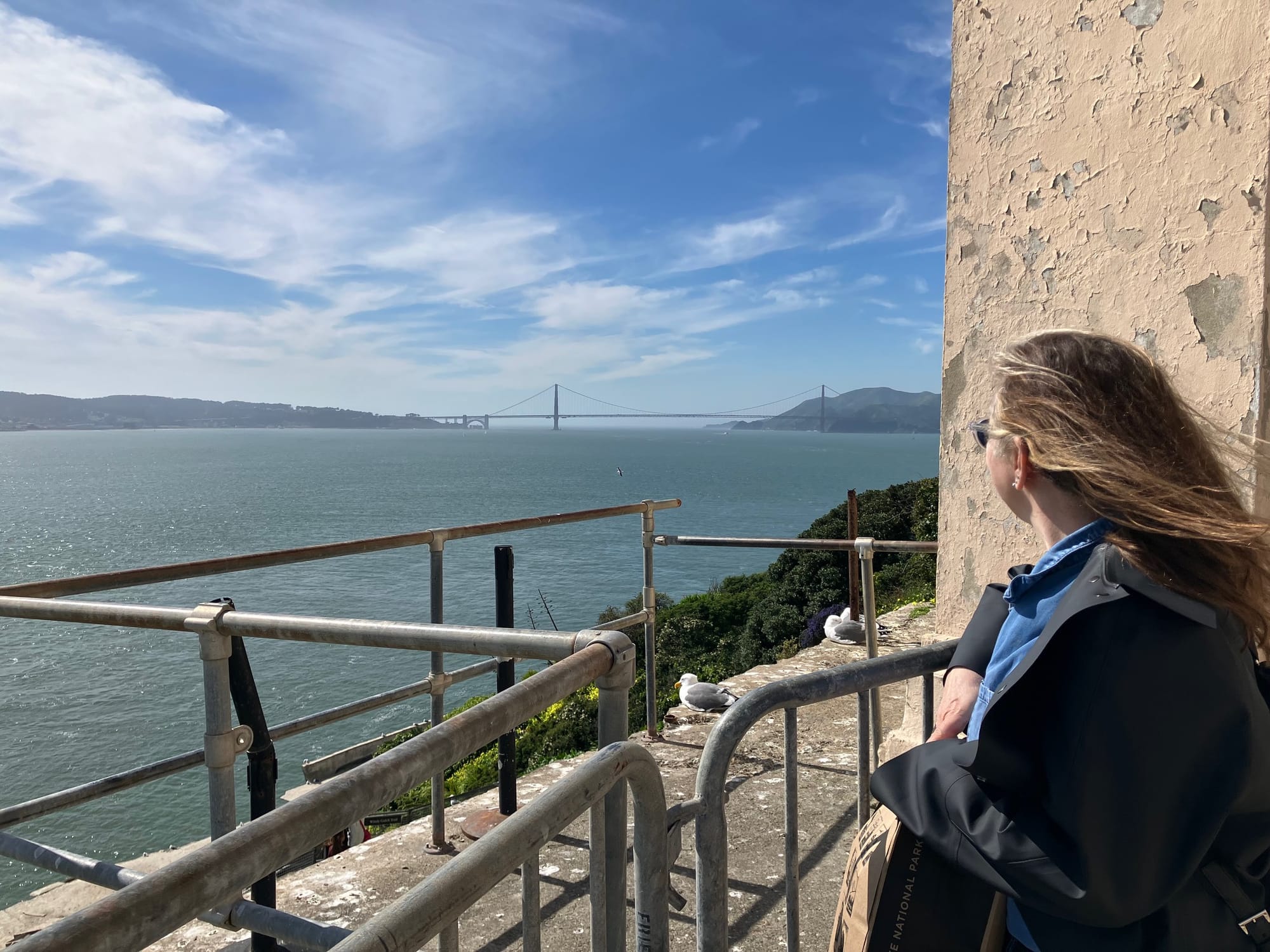Recently, Dave and his partner, Ulla, were traveling to New Zealand to visit family and taking a stopover in San Francisco. But since our last visit to Rye, we have moved from our home on San Francisco Bay to a place located 100 miles away in the Sierra foothills. We drove out, picked them up at the airport and spent the next day chauffeuring them around the sights and taking a trip out on the bay to visit the nefarious Alcatraz prison. The pictures that are attached are from the Alcatraz visit and a stop by the iconic Coit Tower with a sweeping view from the top.