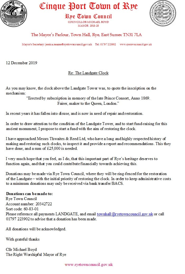 Rye News has received the following letter from the Mayor of Rye: