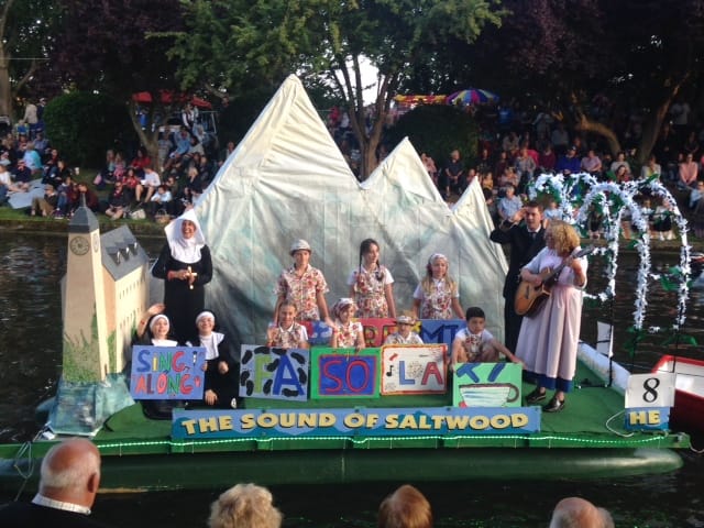 On Wednesday August 16, Hythe hosted a chain gang of mayors (the unofficial collective noun for such a group). The occasion was the biannual Venetian fete, which sees richly and creatively dressed floats elegantly pass by along the Military Canal. Waterborne bands also entertain spectators and guests who picnicked on the steep canal banks.