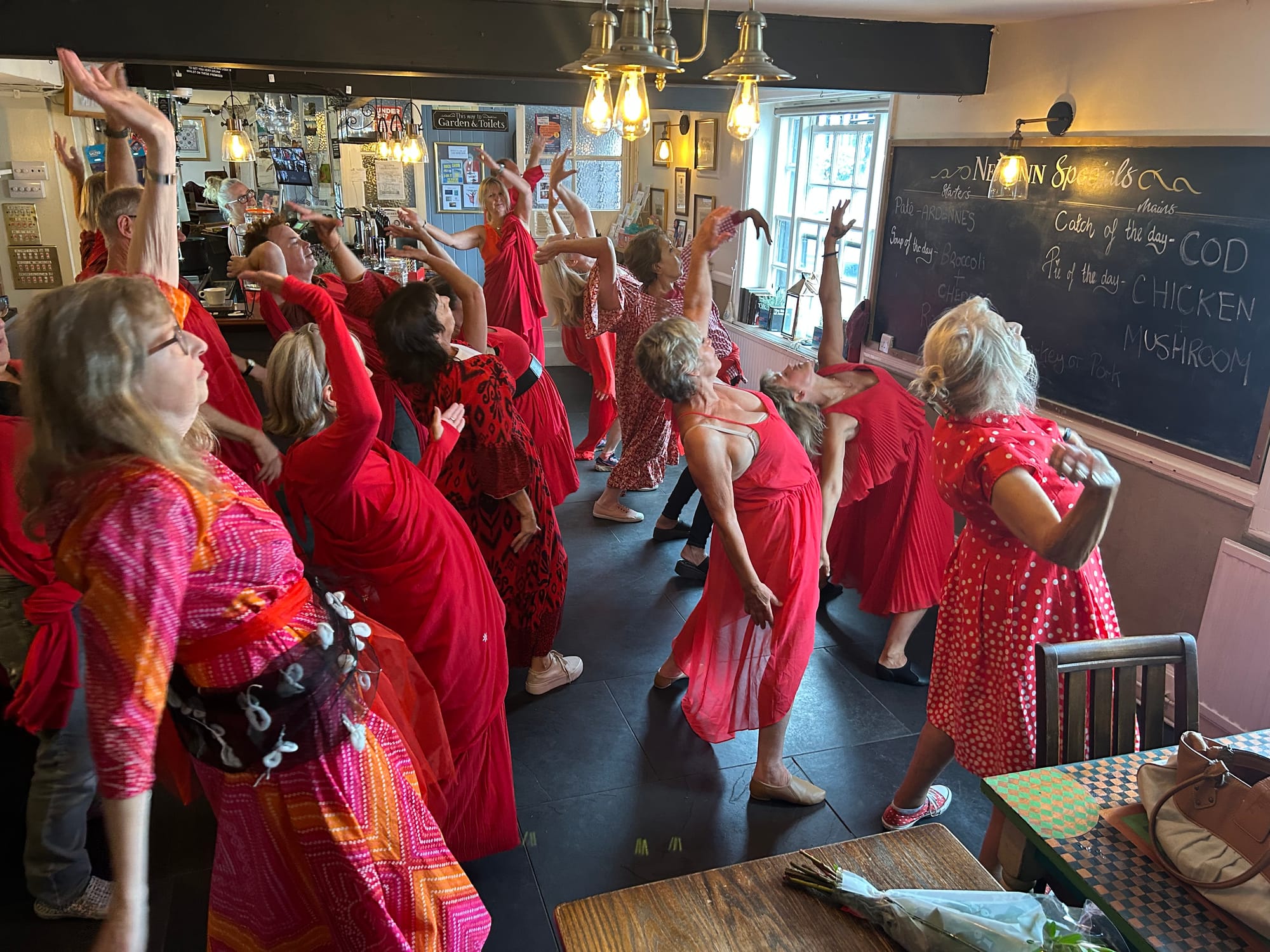 Some came ready in red dresses, others were grateful for a piece of red cloth to wrap around. Glen Marks enjoyed the experience, organised by wife Jo. "It's such a random thing to do, there's absolutely no reason to do it at all. We'll probably be in the Guinness Book of Records for the smallest Kate Bush event in the world! But watch out Folkestone, Winchelsea is coming after you."