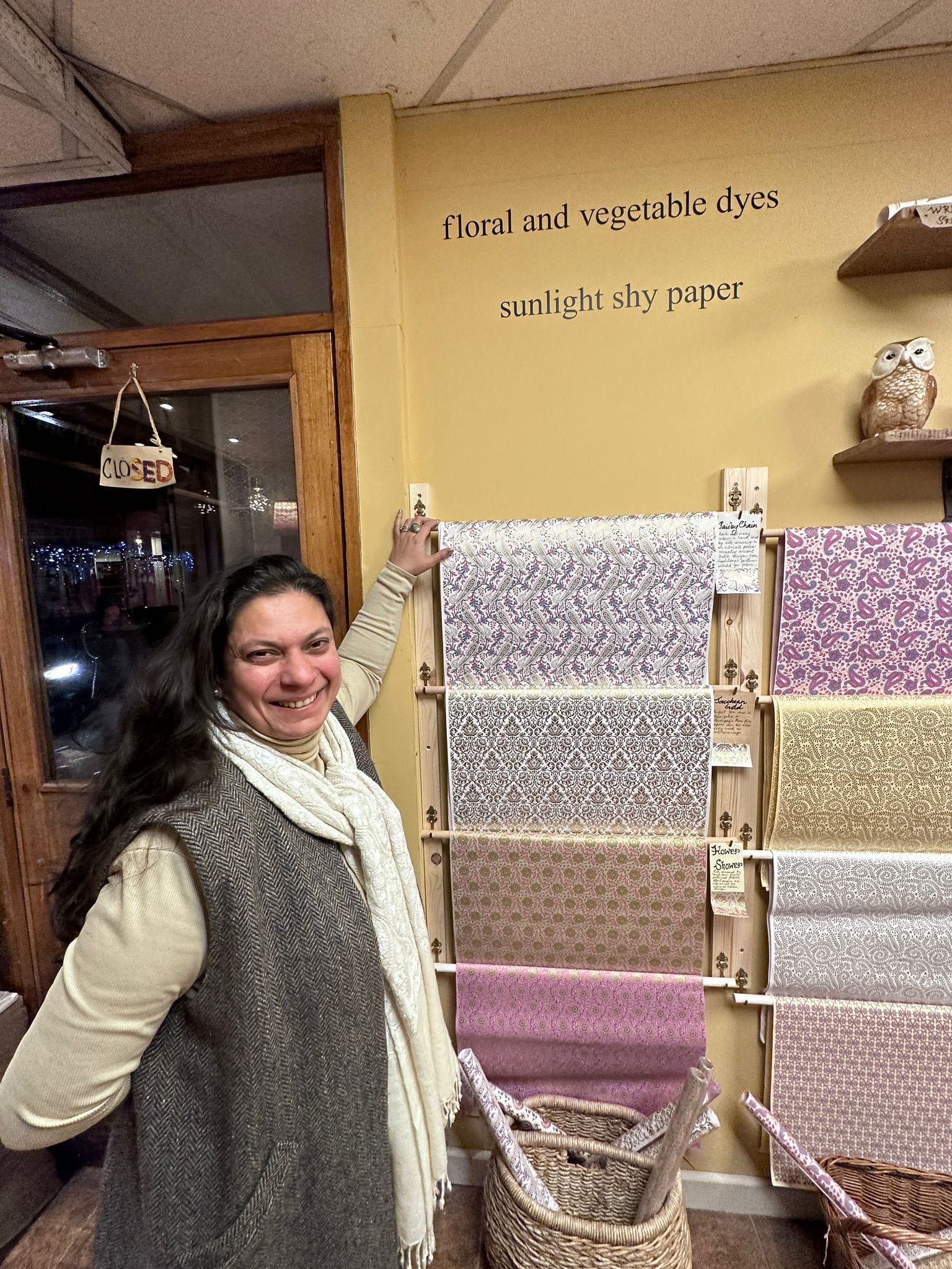 Perhaps like the tapestry of her own life, she envisions The Paper Place continuing to evolve and adapt. She has already almost sold out of her current stock of beautiful embroidered silk fabrics and detailed, colourful, hand-painted Christmas ornaments. She is planning workshops in the new year to teach people how to use the paper to cover containers, trays and book binding.