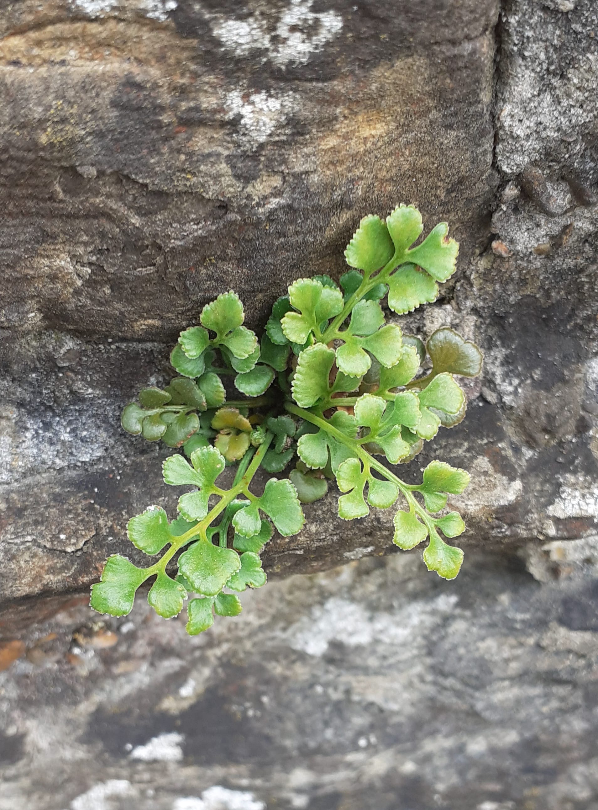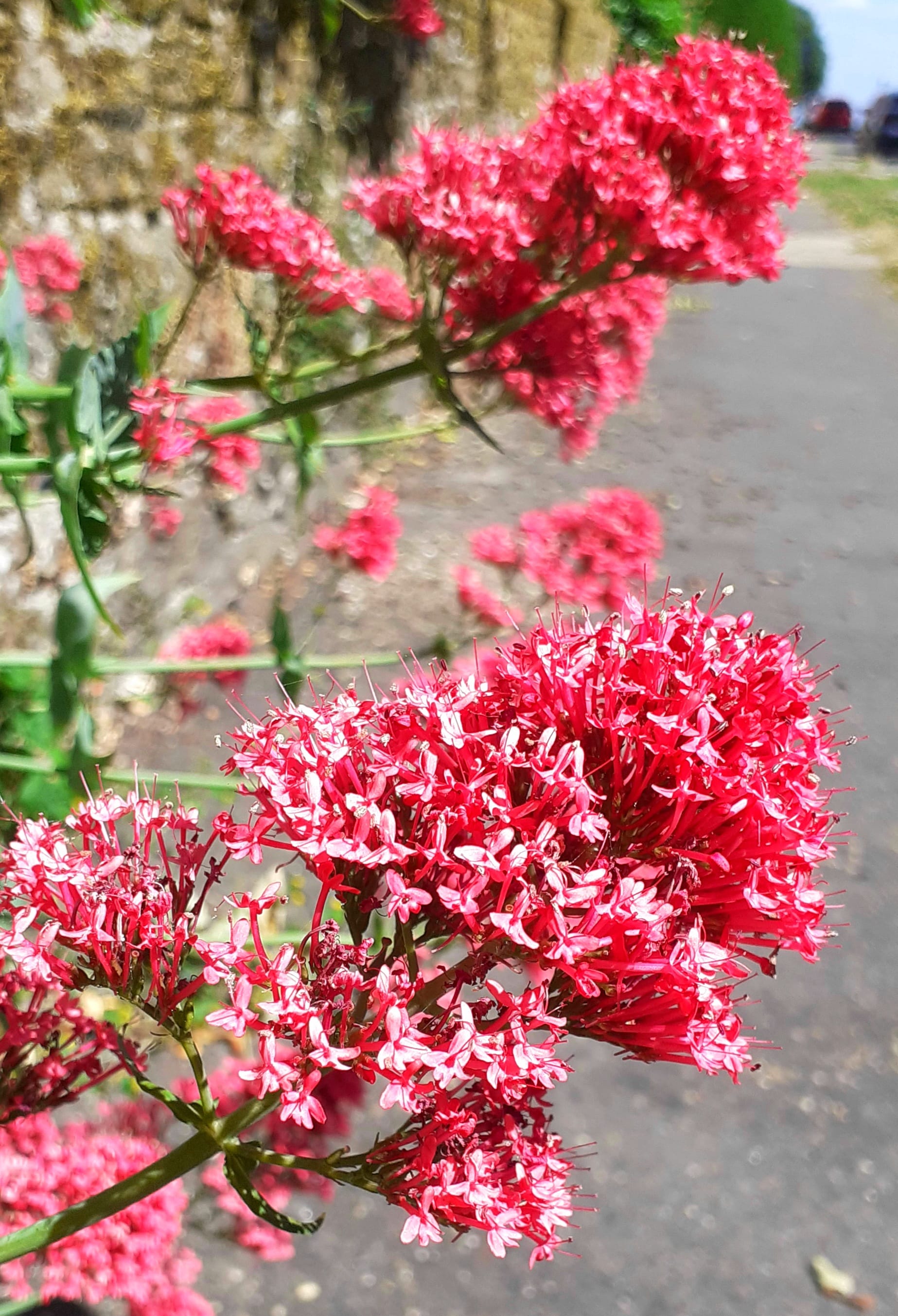 Red Valerian is tall and colourful and can't help but show-off. Its ability to self-seed is an asset in urban environments, but it can become invasive in the wild. Other wall plants are more modest; look for the tiny, inconspicuously beautiful fern Wall-rue with its club-shaped leaflets that appear in clusters of three. The plant's presence on buildings might be explained in part by the belief that it wards off evil spirits; it was once encouraged to grow near doorways and windows.