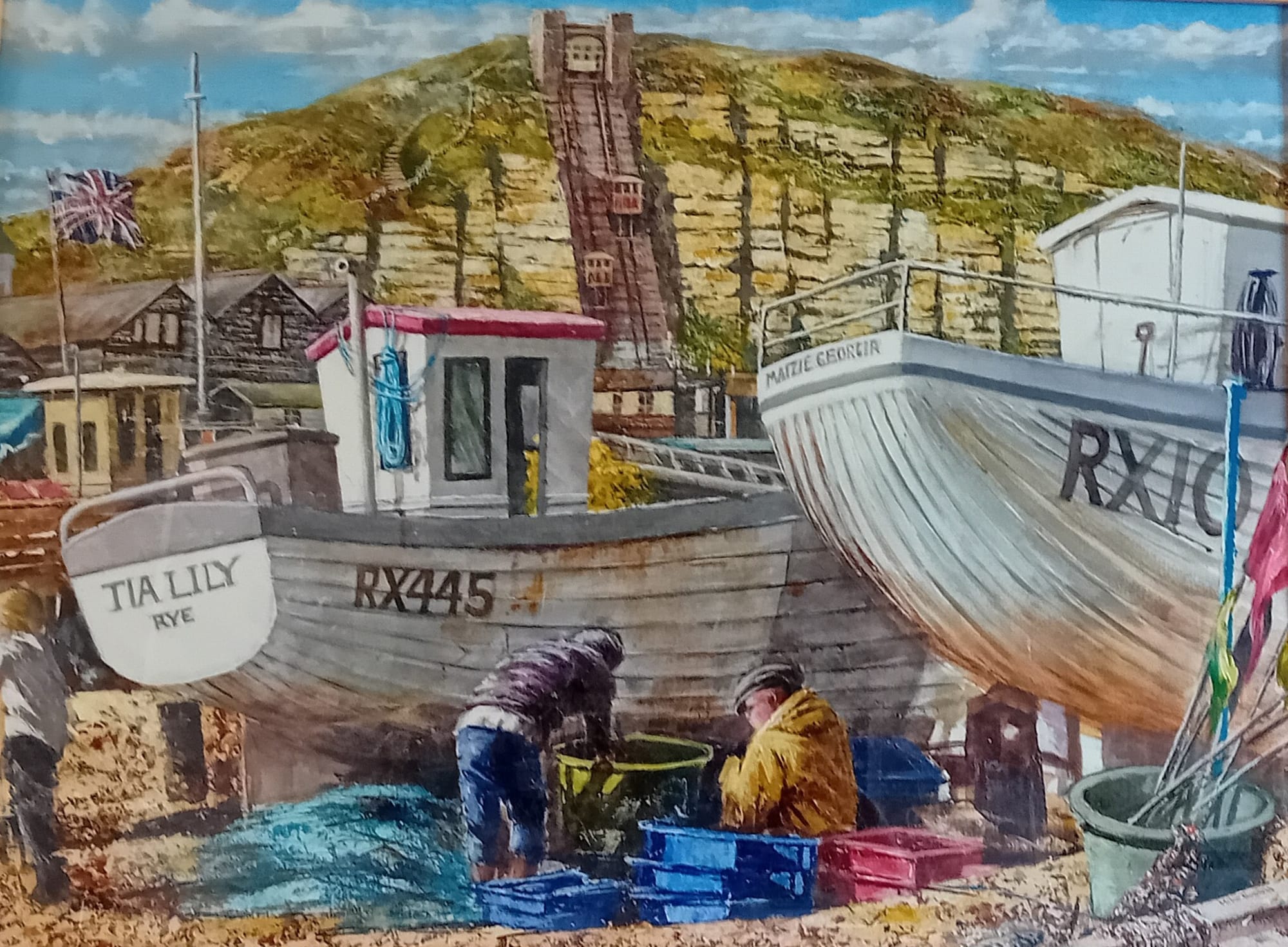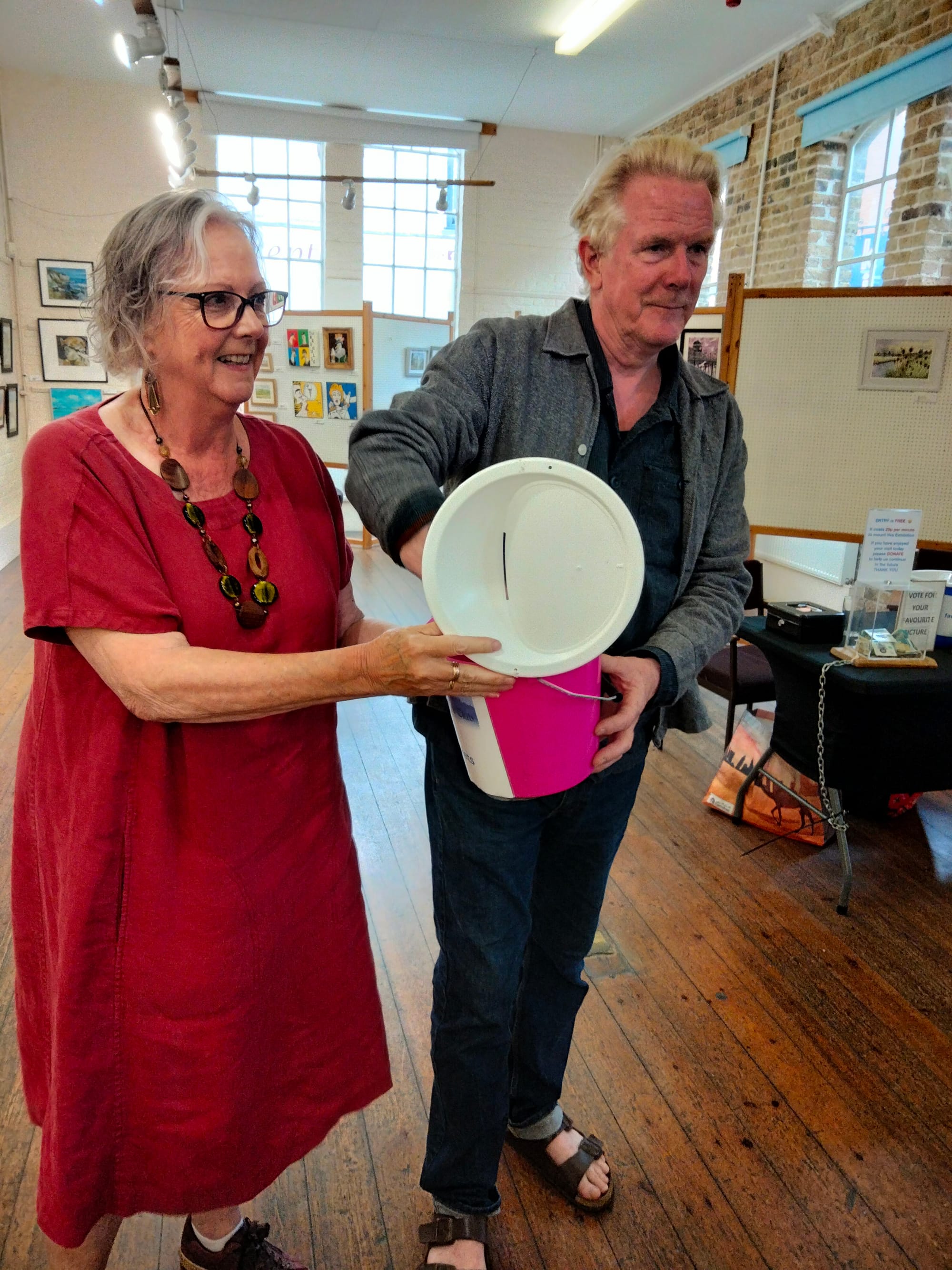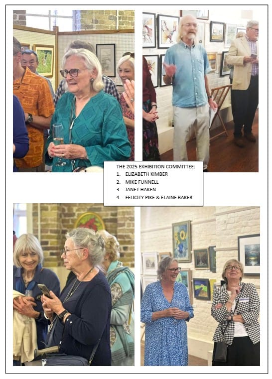 Felicity Pike, chair, and the committee have to thank Richard Adams, our philanthropic vice-president and acclaimed Rye artist, for the generous raffle donation of one of his original pastel paintings, ‘The Mudlarks’. He’s seen here drawing the winning ticket at the close of the exhibition. It’s just waiting now to go to its new home in Oxford. Congratulations to the purchaser of ticket number 450!