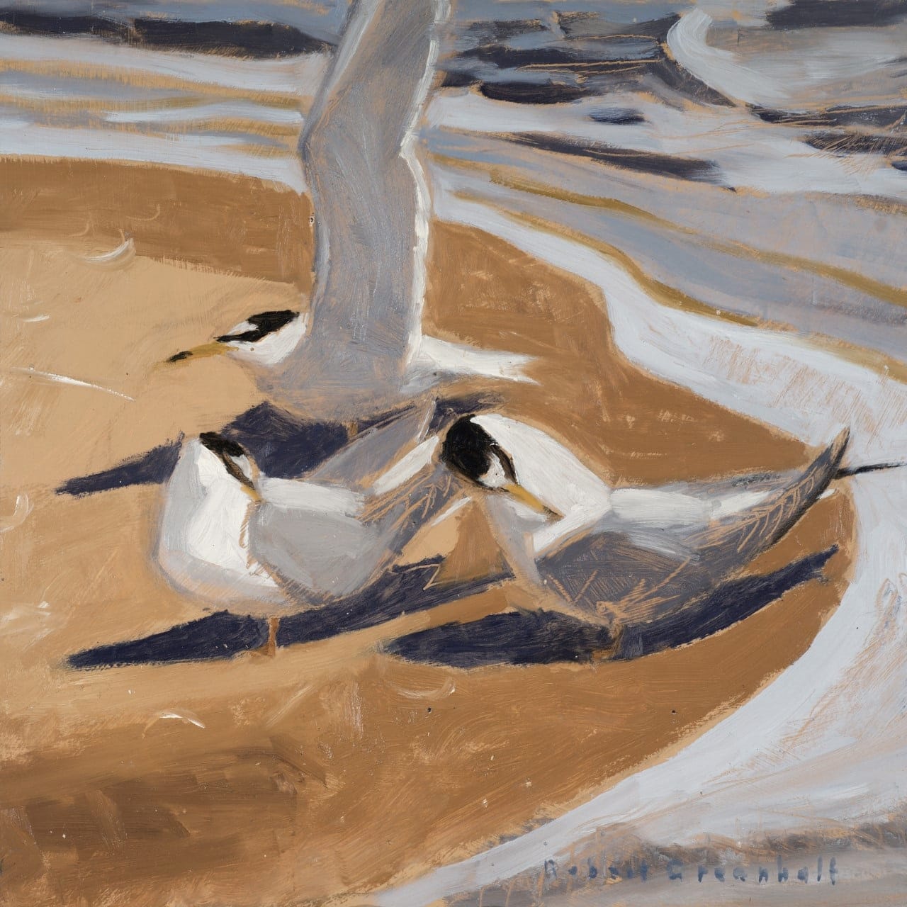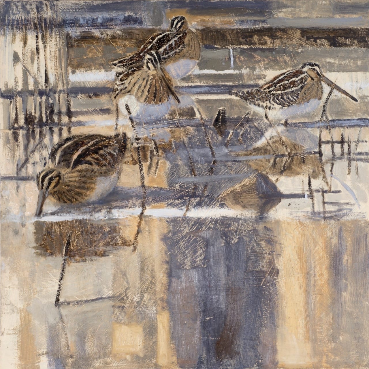 All my paintings and prints begin in the field, where perhaps a group of birds or an effect of the light will attract my attention and I will then make rapid pencil sketches and maybe apply some watercolour or colour notes to try to capture the moment in my memory. Back in my studio I may make a quick watercolour or oil painting, using the field sketches as reference.