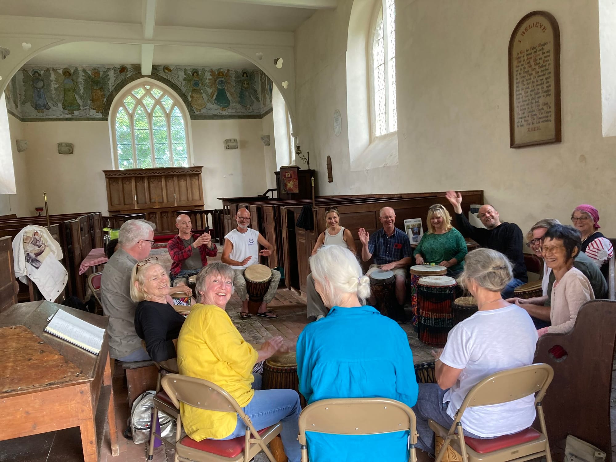 On Sunday July 21, Emma Cutler (who practices yoga, exercise and sports massage) arranged a wonderful event in East Guldeford, at St Mary's church. She persuaded a friend, Jamie Moran, a seasoned musician who gives African drumming workshops in Seaford, to come to Rye and start something similar.