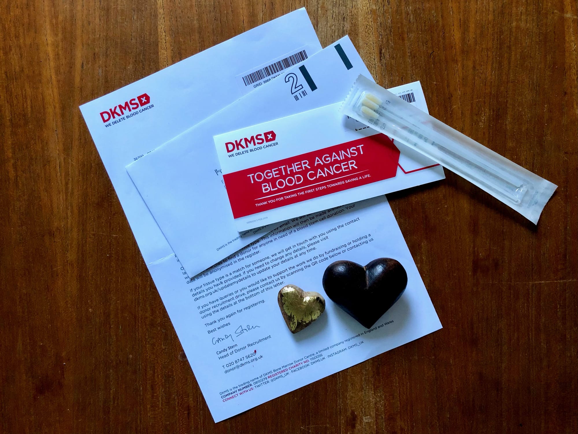 "So I went on to DKMS.org.uk and registered to be tested. It only took a few minutes to put in some details, and a few days later I got a testing kit through the post - three swabs and a prepaid envelope for me to send them back in.