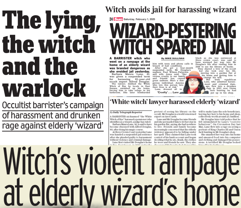 Yet last week at Hove Crown Court, years of torment for Alfred culminated in sensational headlines in the national papers. His former lodger and tormentor, 42-year-old Barbara Maura Lane, dubbed the “White Witch of Rye,” received a suspended four-month jail sentence after admitting to harassing Alfred and going on a violent rampage in his home.