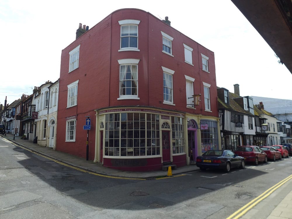 On the opposite side of the road on a corner site adjoining East Street is another fine 18th century shopfront with a long history as a chemists, now the Apothecary Coffee House. Recorded back to 1787, the chemist’s business lasted until a few decades ago. The original labelled drawers inside were stripped out but were recovered by the then Rother Conservation Officer in the 1970s from an antique shop on Romney Marsh