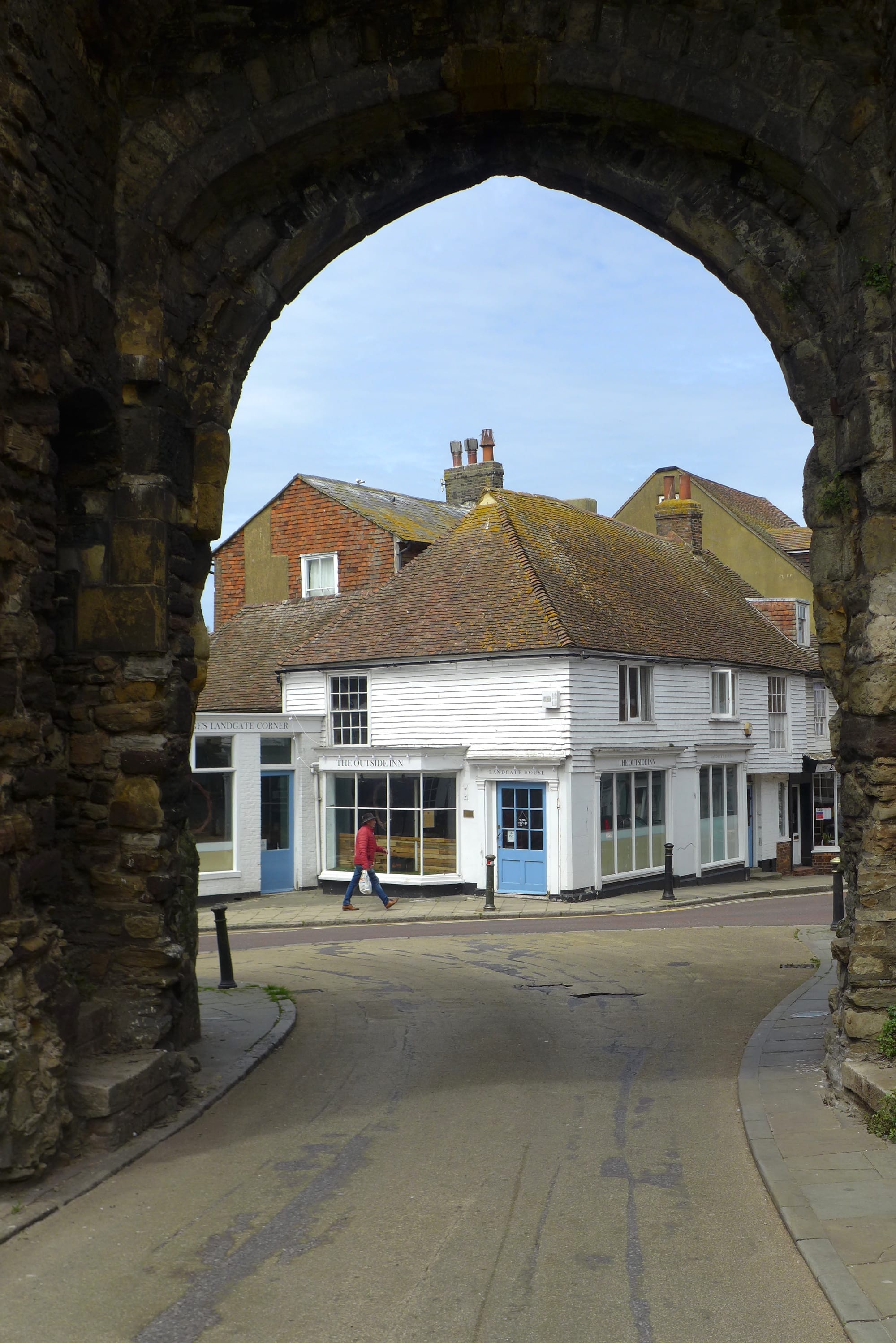 We tend to take the historic monuments in Rye for granted as residents, but the Landgate is a remarkable survival from the 14th century when Rye was on the frontline of defence in the Hundred Years War against France. Looking back through the arch, the Outside Inn is a historic building on an important corner site, just outside the town walls of Rye. It has a 13th century stone vaulted cellar beneath the present building which dates from about 1600 and was an inn, the “Rye Galley”. Later, it was a hatter’s shop and Bragge’s antique shop from 1929. It has recently been opened as a wine bar, returning to its original use.
