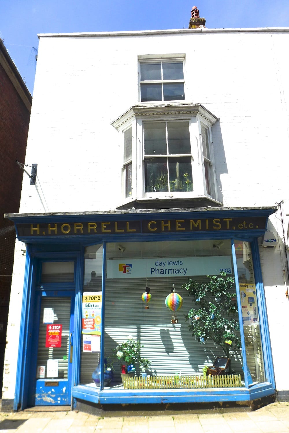 A little further on is the third of the glass fronted fascia signs at Day Lewis Pharmacy. Horrell Chemist’s business dates from the 1890s.