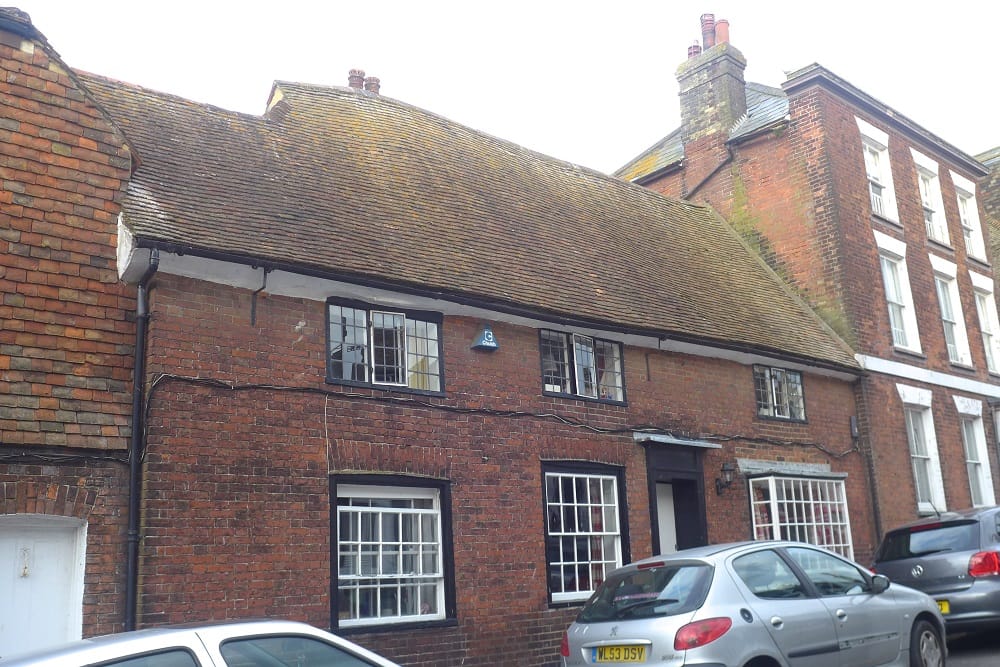 Just beyond the turning to East Street is 11 High Street, the parent house for the gazebo in Cinque Ports Street at the start of the walk. The building is significant for two reasons; it is an example of the typical layout of Rye in its early spacious phase, having buildings parallel to the roads in large plots. This example dates from the peak of prosperity of Rye in the early 16th century.