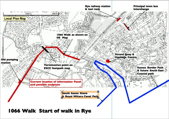 Since our last report in Rye News, concern has been expressed at the out of the way point for the 1066 Walk to start. A letter from Rye Conservation Society written by Julian Luckett the chairman of the Rye Conservation Society planning committee to Rother District Council makes clear this concern:
