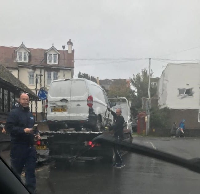 Soon after the new parking regulations were introduced in Rye, a patrolling parking warden was alerted to the said van and asked to make enquiries, this he did, then promptly issued a warning notice which was stuck on the windscreen. A few days later (as shown in photo above) a truck arrived, collected the van, presumably to be taken to a car pound for the owner to collect at some point.