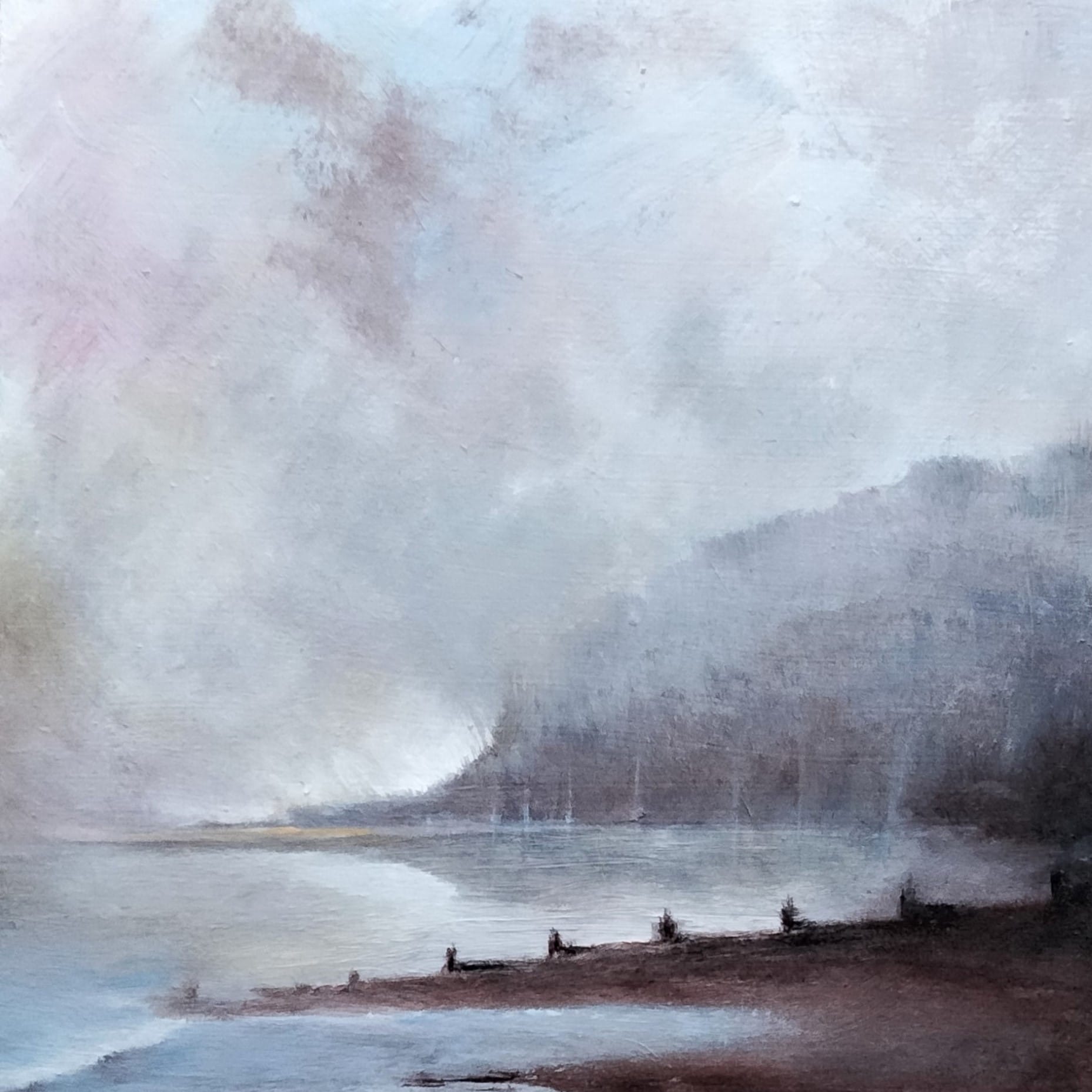JANET HAKEN’s Pett Level Beach on a Misty Morning. Acrylic – Turner would have used it had it been around in his day!
